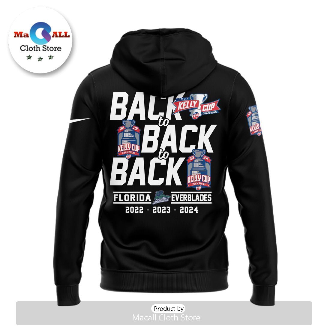 2024 Florida Everblades Kelly Champions Black Hoodie 3D Information: