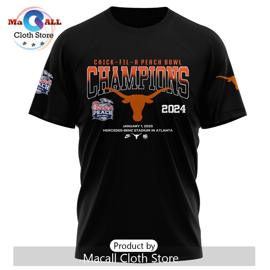 2025 Texas Longhorns Peach Bowl Champions Hoodie 3D Trendy Fashion Hoodie, Zipper Hoodie, Fleece Zipper Hoodie, Dress Hoodie, T-Shirt, Long Sleeves, Sweatshirt and Long Pant