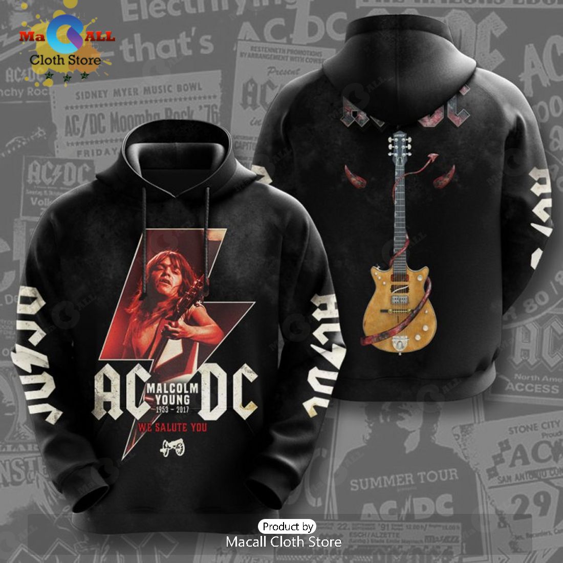 AC DC Malcolm Young 1953 2017 We Salute You Black Apparels Hoodie 3D Trendy Fashion Hoodie, Zipper Hoodie, Fleece Zipper Hoodie, Dress Hoodie, T-Shirt, Long Sleeves, Sweatshirt and Long Pant
