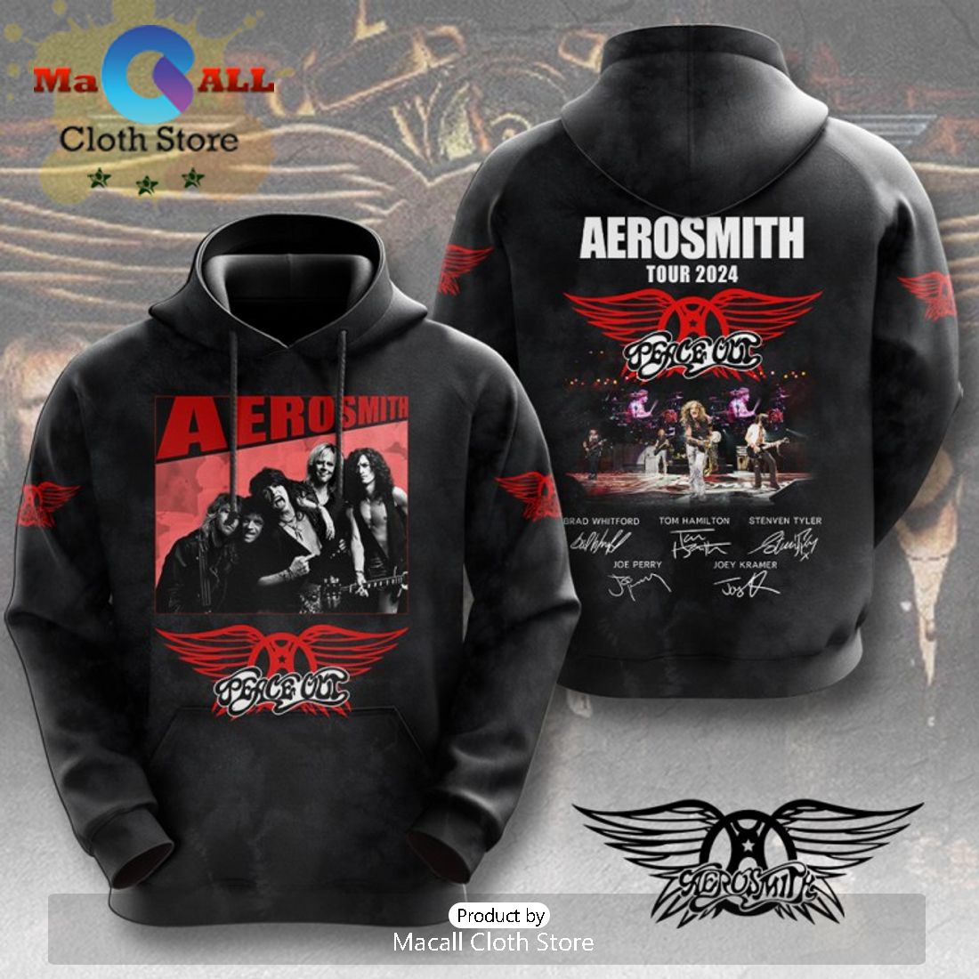 Aerosmith Tour 2024 Peace Out Signatures Black Hoodie Information: