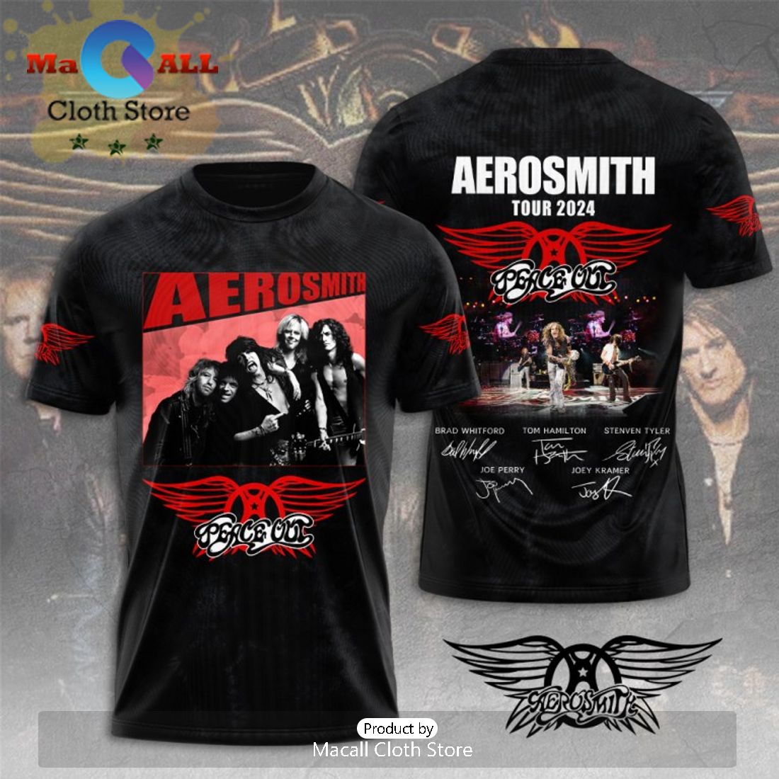 Aerosmith Tour 2024 Peace Out Signatures Black Hoodie Trendy Fashion Hoodie, Zipper Hoodie, Fleece Zipper Hoodie, Dress Hoodie, T-Shirt, Long Sleeves, Sweatshirt and Long Pant