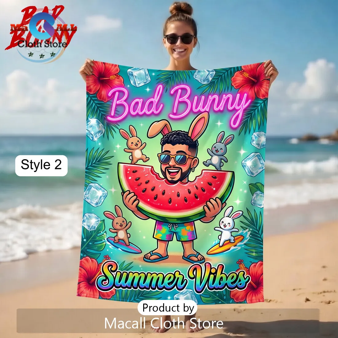 Hit the beach and instantly connect! This Bad Bunny beach towel is your ticket to compliments and new friends, sparking conversations with its undeniable summer energy.