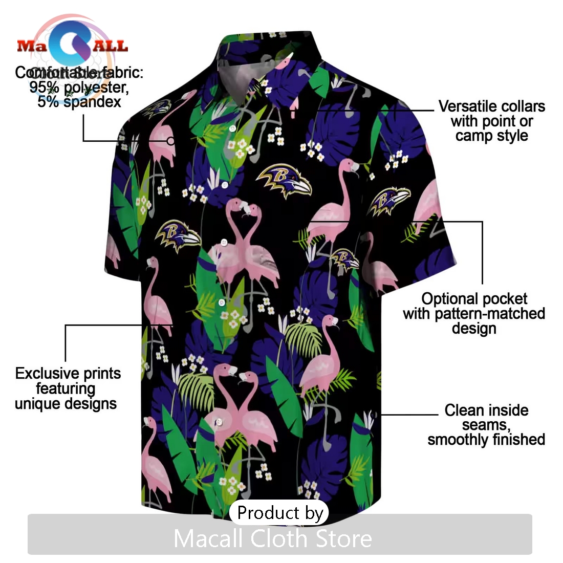 Baltimore Ravens Flamingo Foliage Hawaiian Shirt Information: