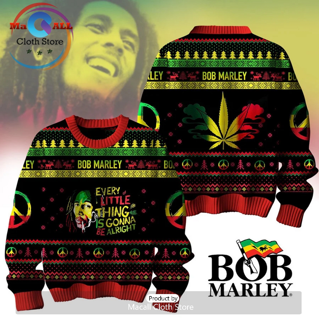 Bob Marley 2024 Christmas Sweater Information: