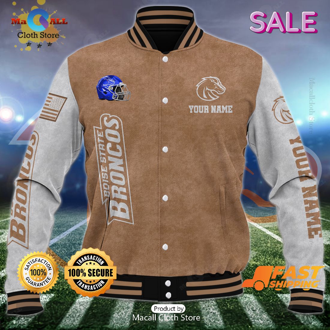 Boise State Broncos Custom Name Special Brown Baseball Jacket | Trendy Bomber Jacket, Hoodie Varsity Jacket – Fashionable Outerwear for Every Occasion
