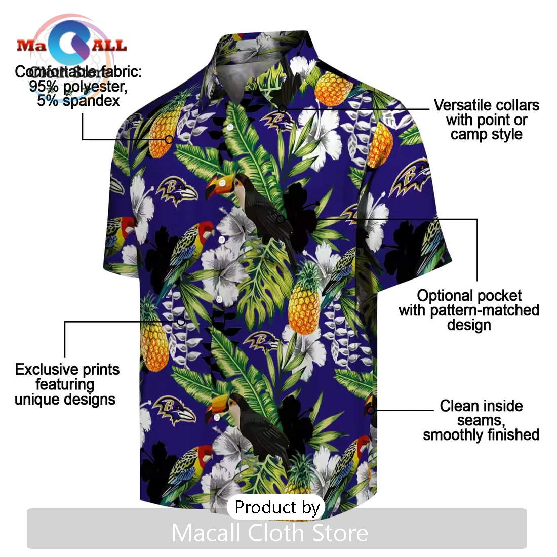 Custom Baltimore Ravens Tropical Toucan Hawaiian Shirt Information: