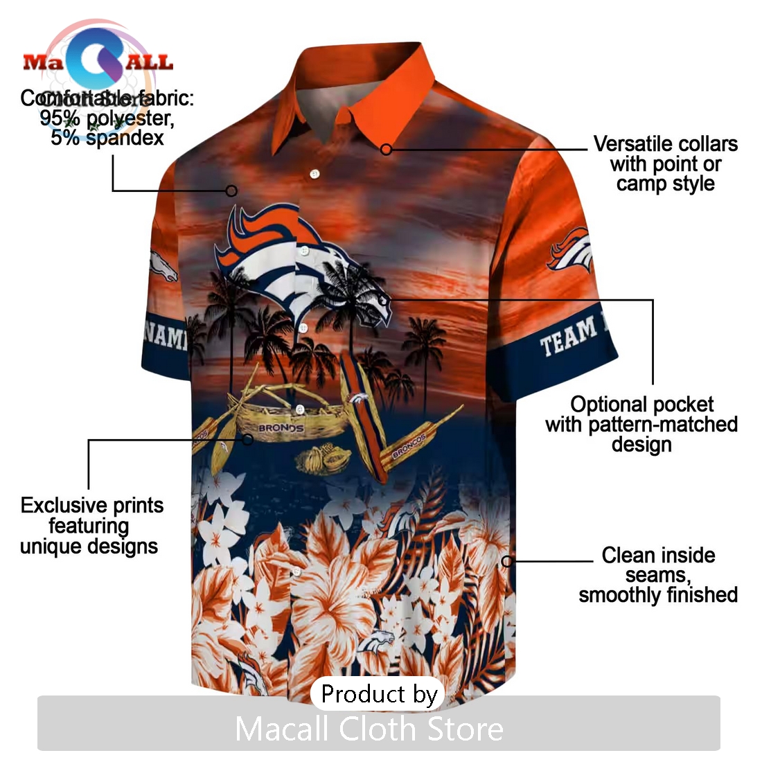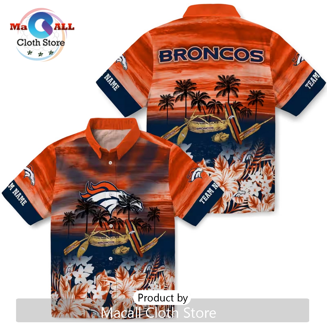 Custom Denver Broncos Tropical Canoe Hawaiian Shirt