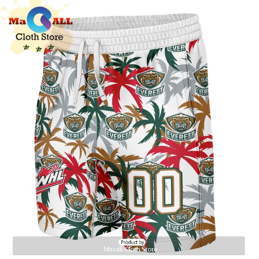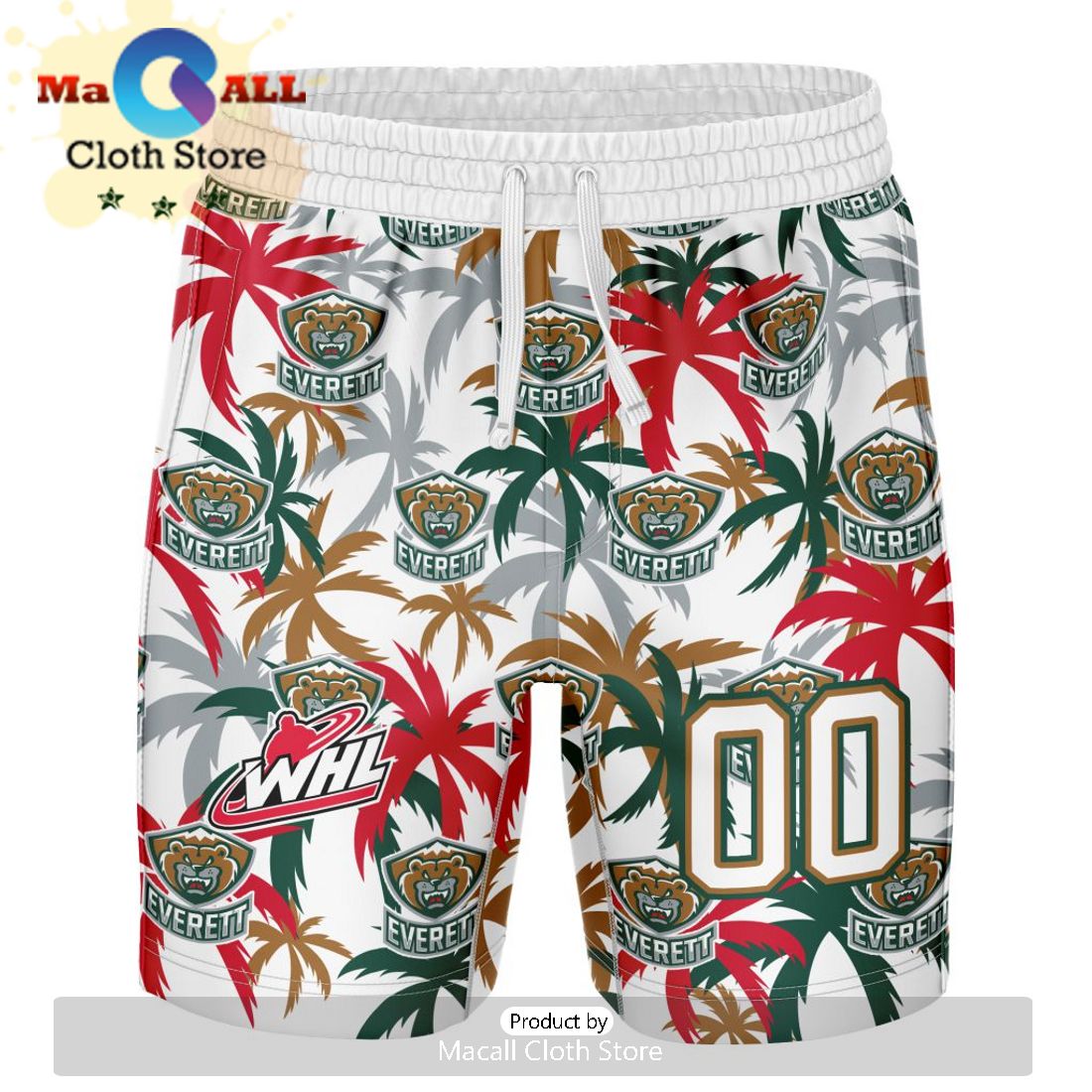 Custom Everett Silvertips Hawaiian Shirt And Short Pant Using Away Jersey Information: