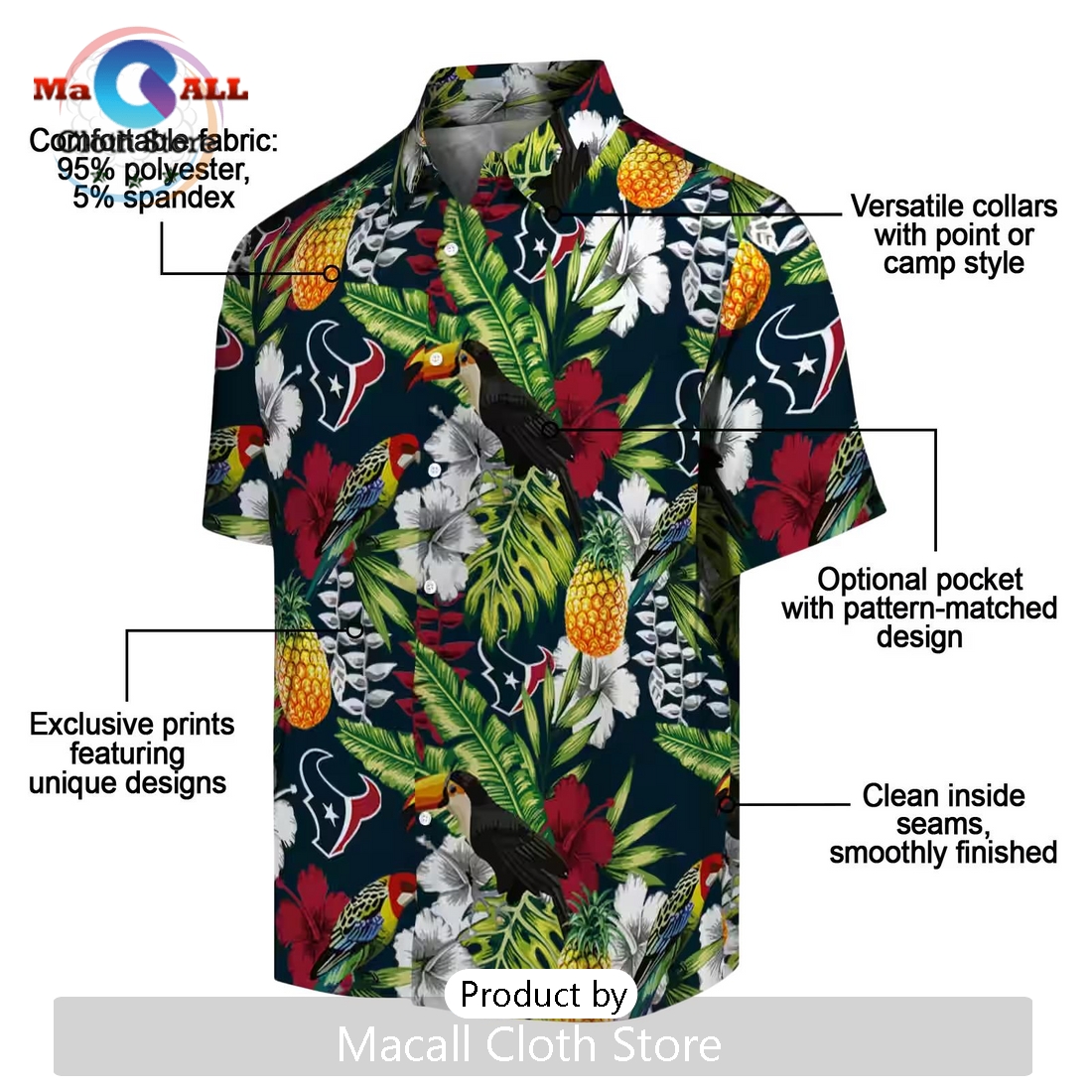 Custom Houston Texans Tropical Toucan Hawaiian Shirt Information:
