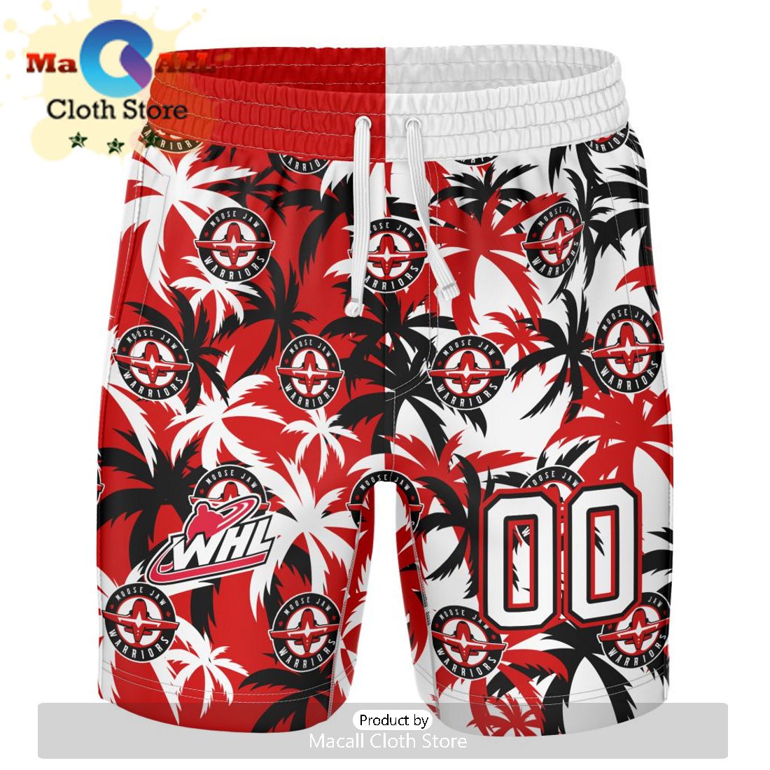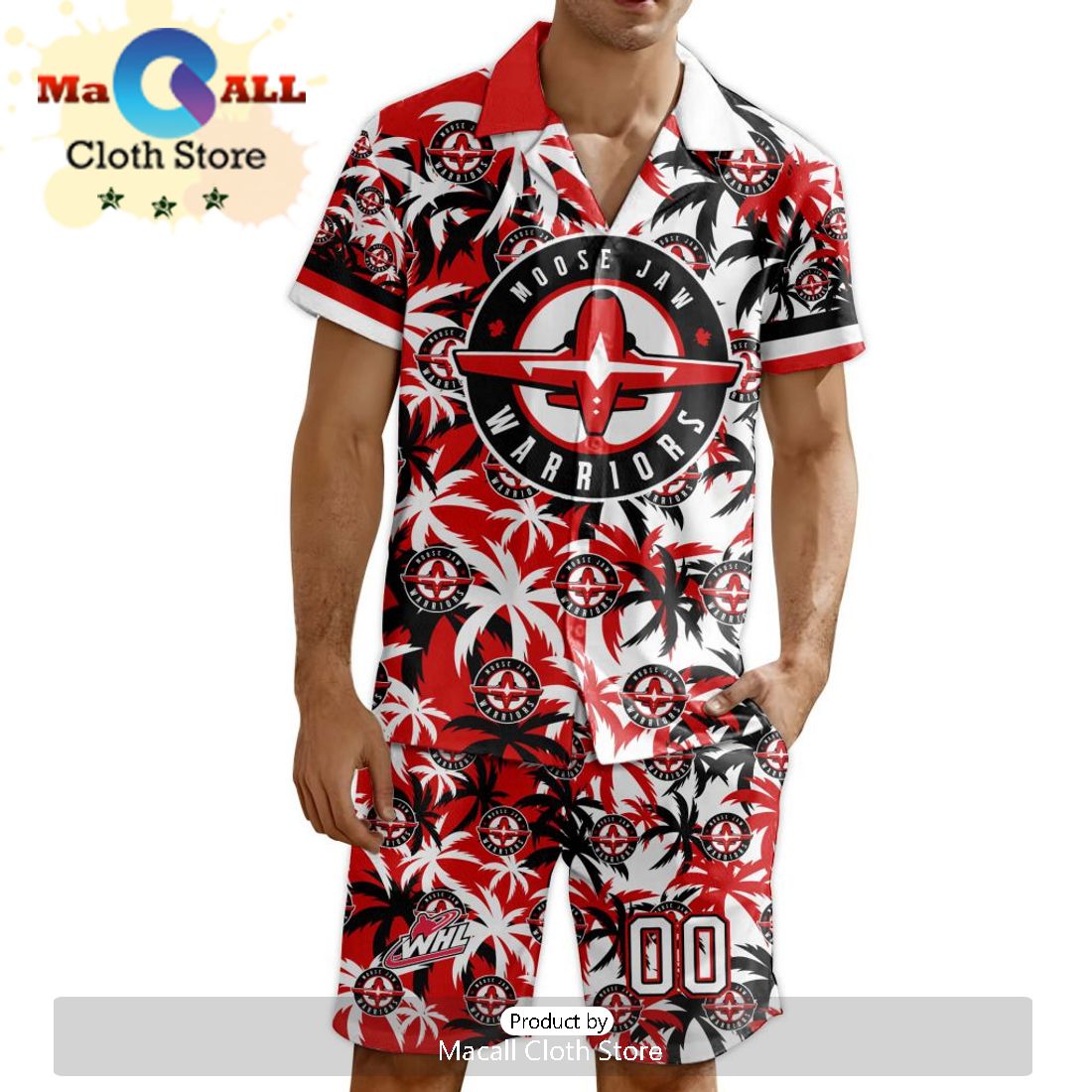 Custom Moose Jaw Warriors Hawaiian Shirt And Short Pant Using Mix Home Away Jersey Information: