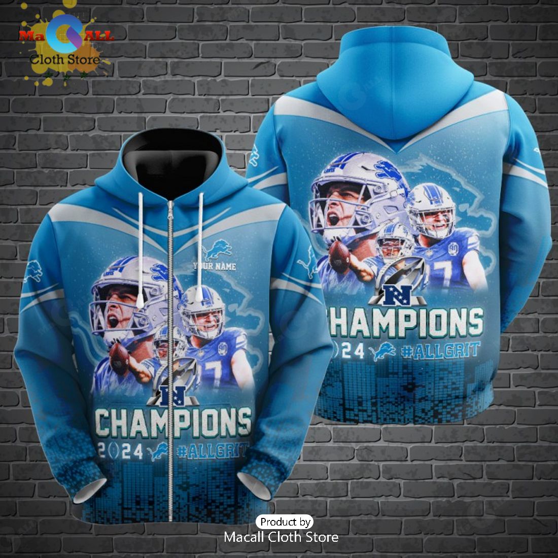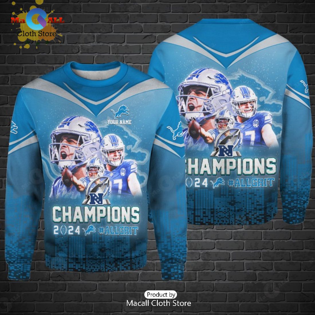 Custom Name Detroit Lions AFC Champions 2024 Gifts Hoodie And Pants