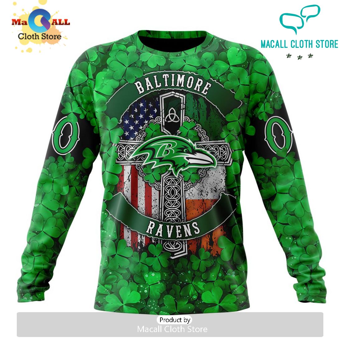 Custom NFL Baltimore Ravens Special Design For St. Patrick’s Day Hoodie 3D Trendy Fashion Hoodie, Zipper Hoodie, Fleece Zipper Hoodie, Dress Hoodie, T-Shirt, Long Sleeves, Sweatshirt and Long Pant