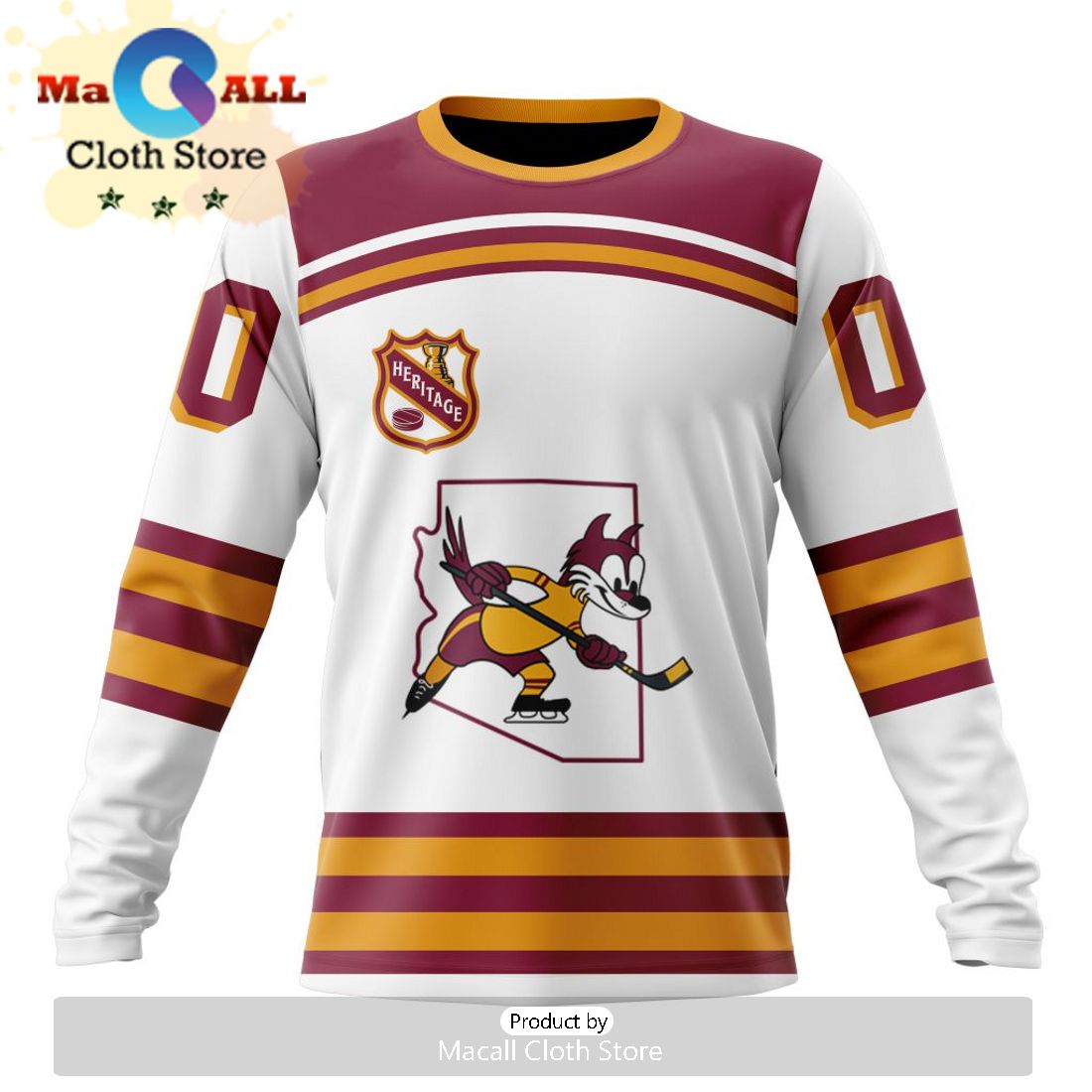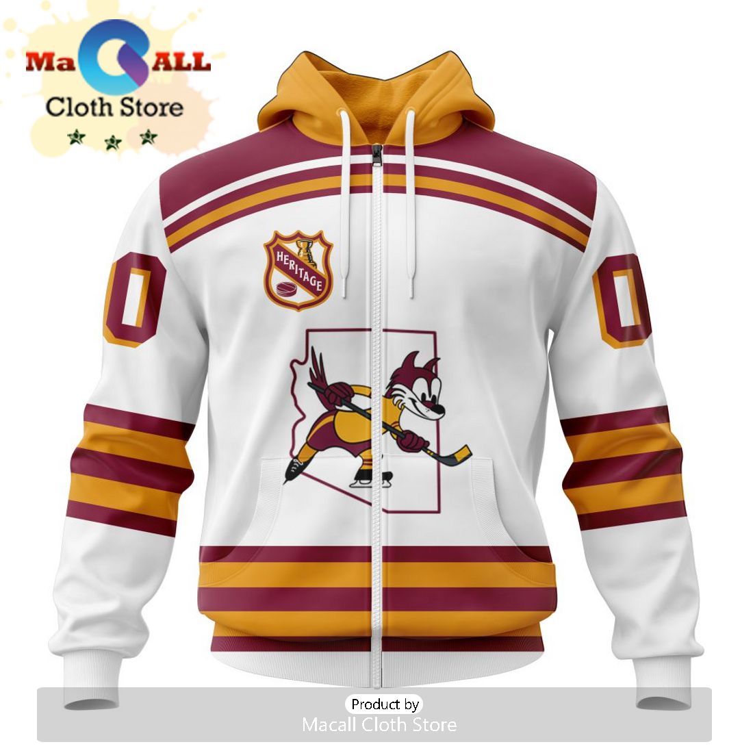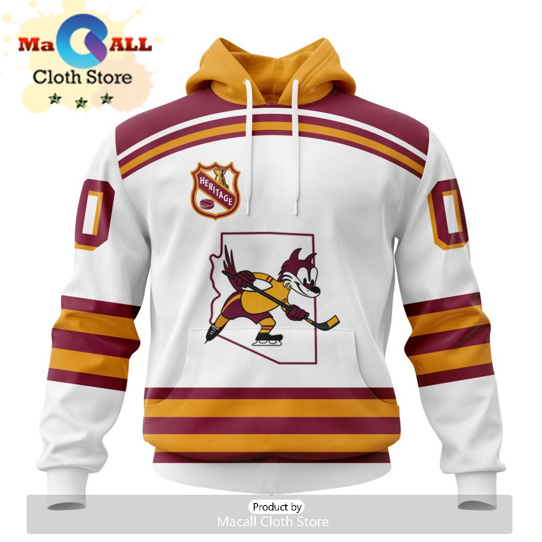 Custom NHL Arizona Coyotes Personalized Heritage Design Hoodie Trendy Fashion Hoodie, Zipper Hoodie, Fleece Zipper Hoodie, Dress Hoodie, T-Shirt, Long Sleeves, Sweatshirt and Long Pant