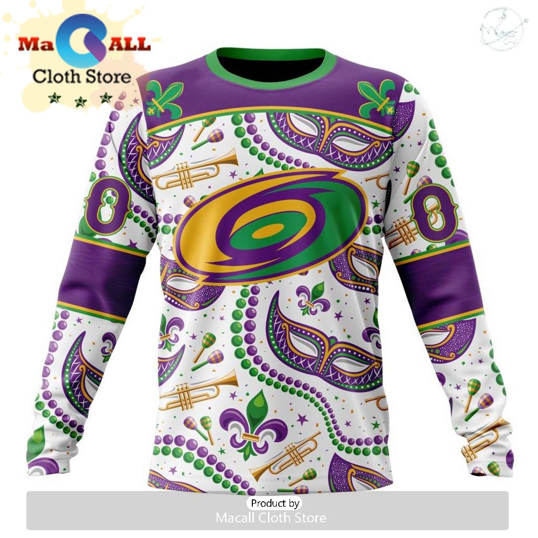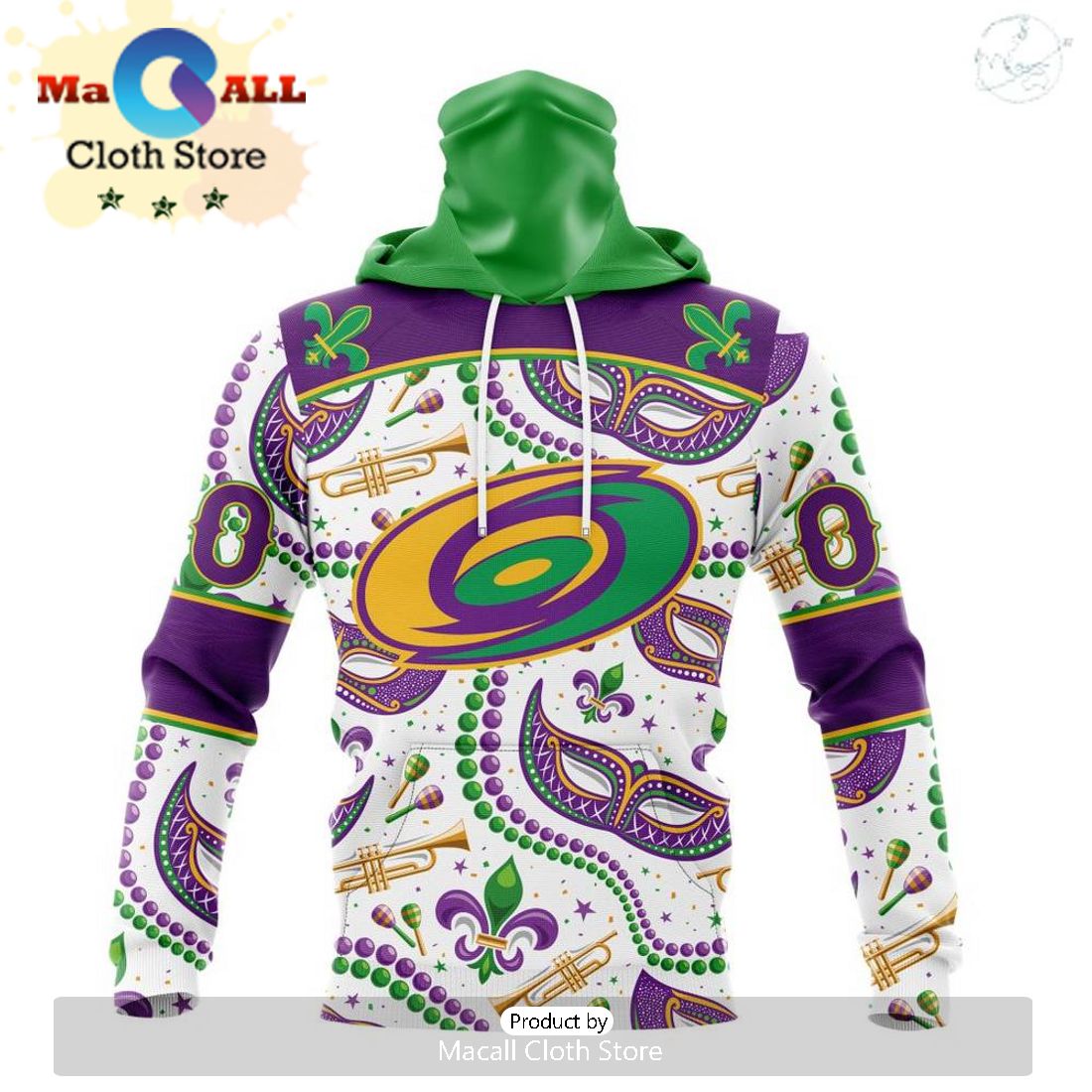 Custom NHL Carolina Hurricanes Special Mardi Gras Design Hoodie