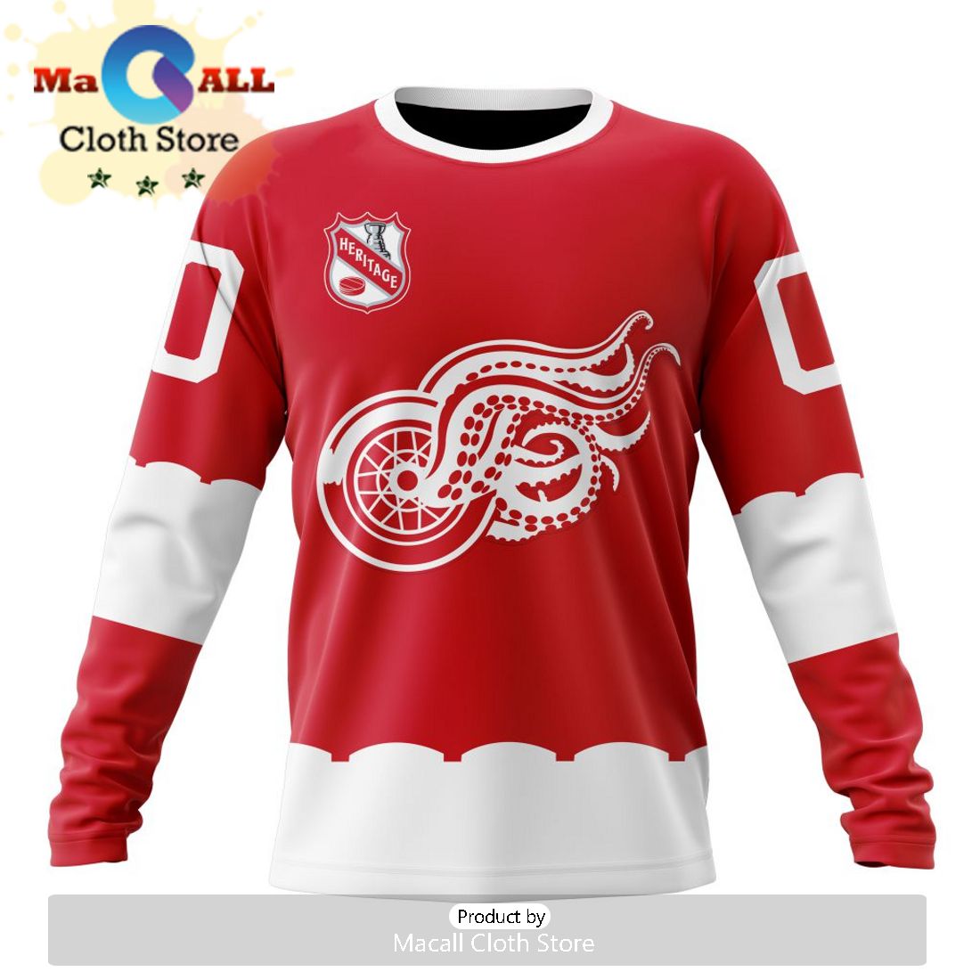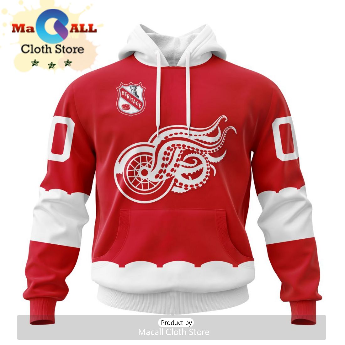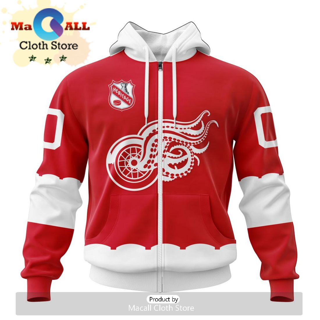 Custom NHL Detroit Red Wings Personalized Heritage Design Hoodie Trendy Fashion Hoodie, Zipper Hoodie, Fleece Zipper Hoodie, Dress Hoodie, T-Shirt, Long Sleeves, Sweatshirt and Long Pant