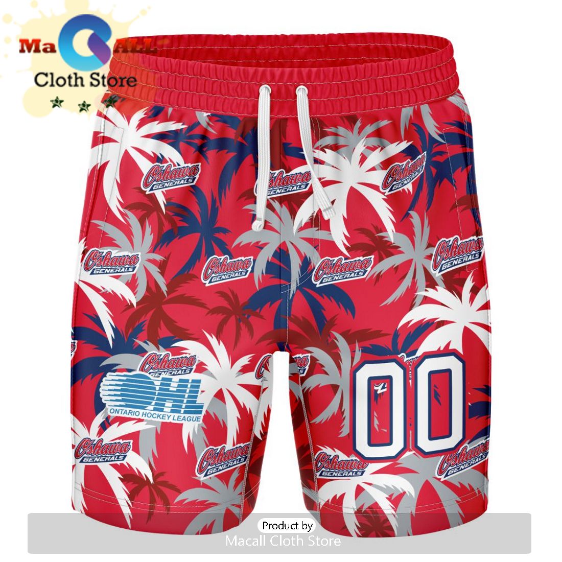 Custom Oshawa Generals Hawaiian Shirt And Short Pant Using Home Jersey Information: