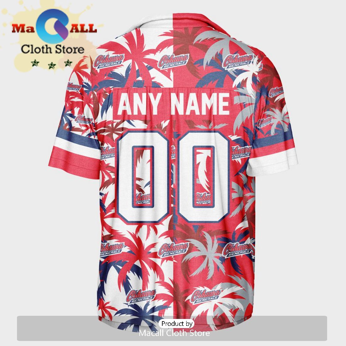 The Oshawa Generals Hawaiian Shirt And Short Pant Using Mix Home Away Jersey is the perfect way to show your team spirit and stay cool this summer. Made from a lightweight, breathable fabric, this jersey is comfortable to wear all day long. The Hawaiian print is a stylish twist on the traditional hockey jersey, and the mix of home and away colors is sure to turn heads wherever you go.