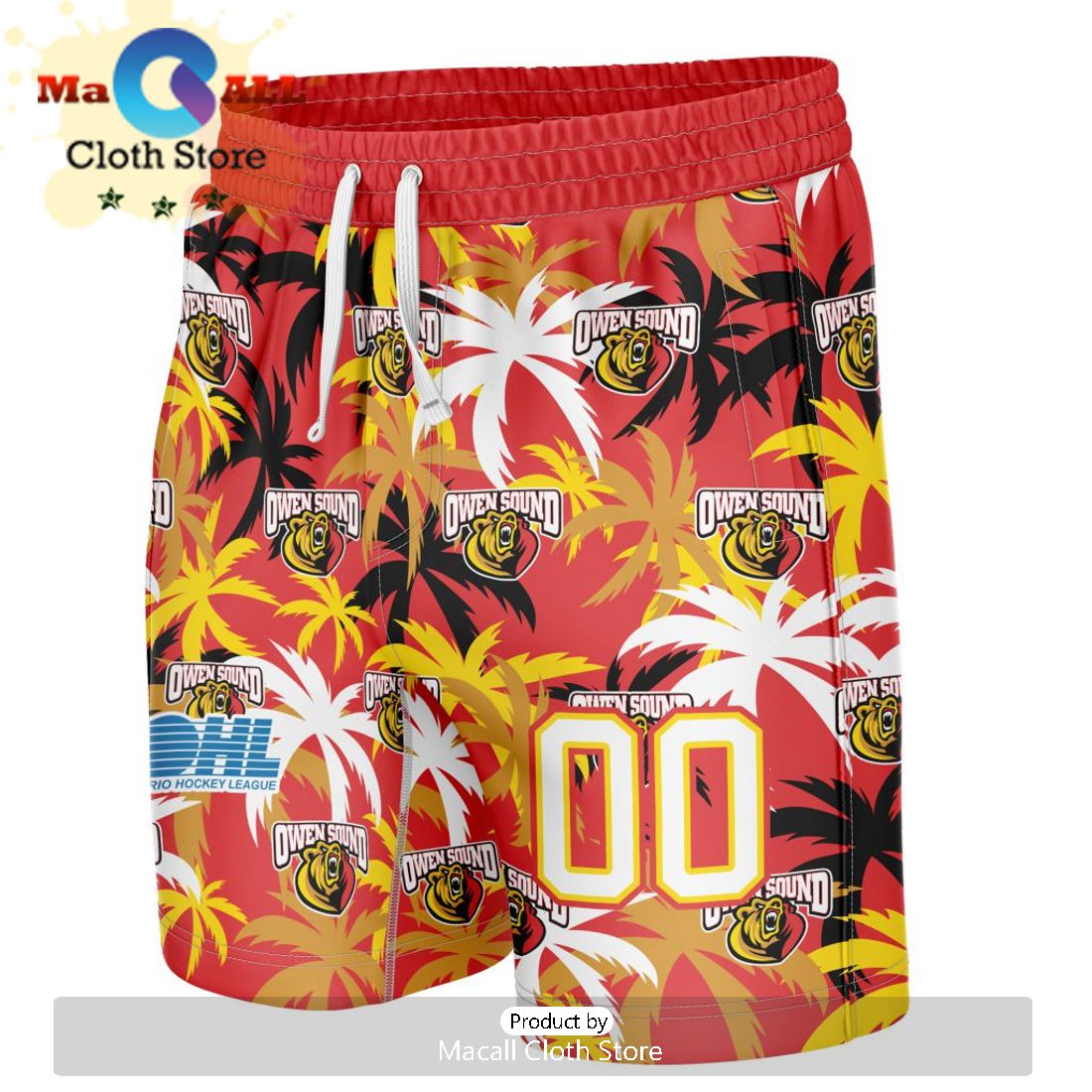 Custom Owen Sound Attack Hawaiian Shirt And Short Pant Using Home Jersey Information: