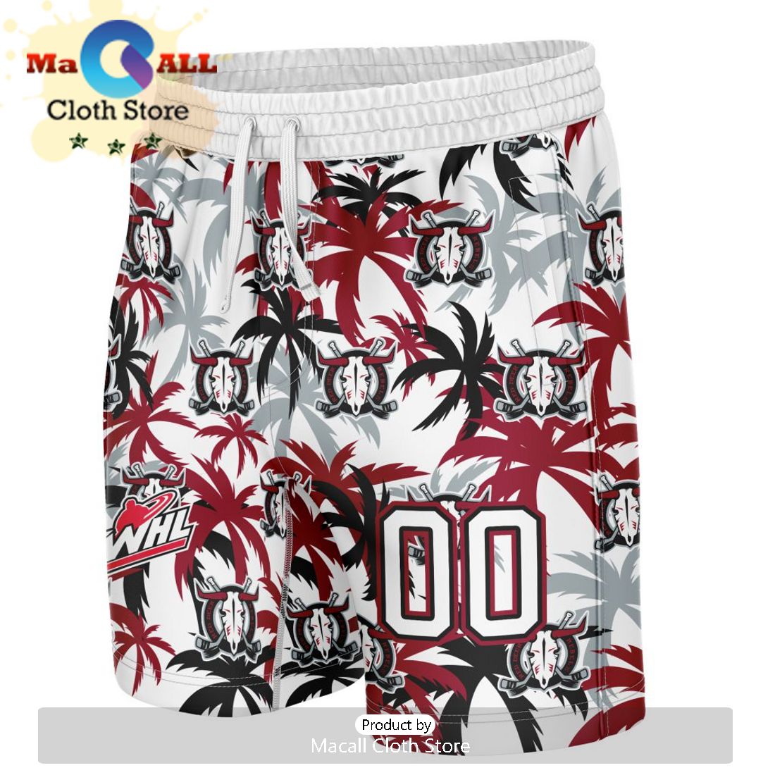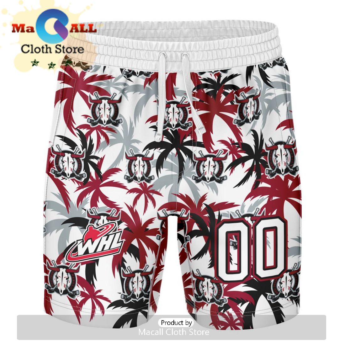 Custom Red Deer Rebels Hawaiian Shirt And Short Pant Using Away Jersey Information: