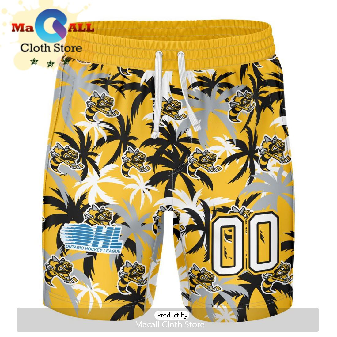 Custom Sarnia Sting Hawaiian Shirt And Short Pant Using Home Jersey Information: