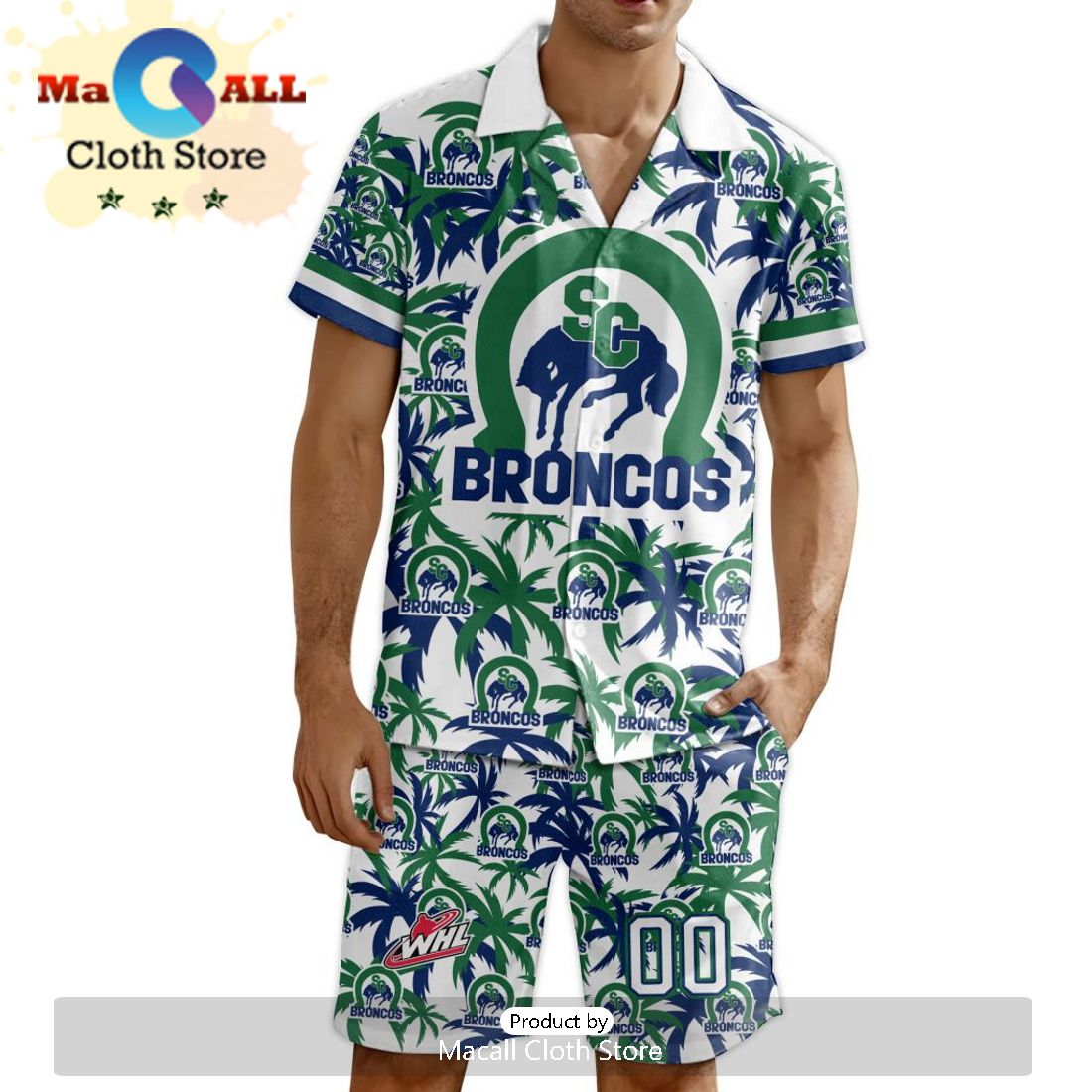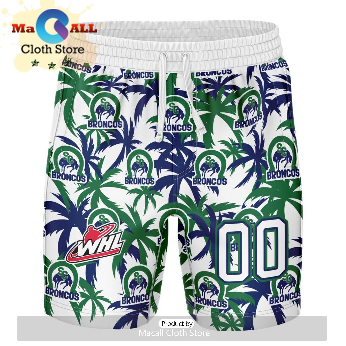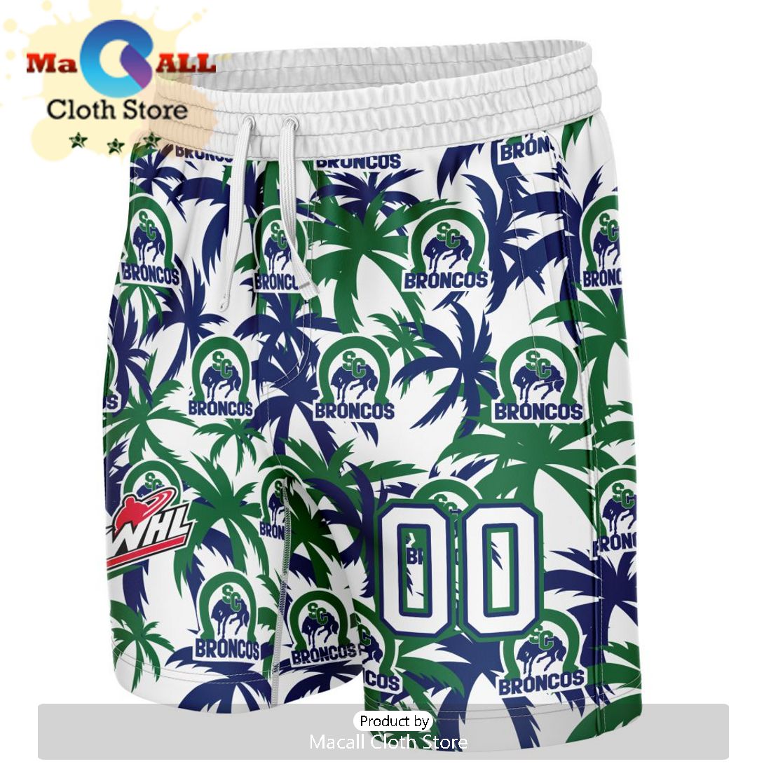 Custom Swift Current Broncos Hawaiian Shirt And Short Pant Using Away Jersey