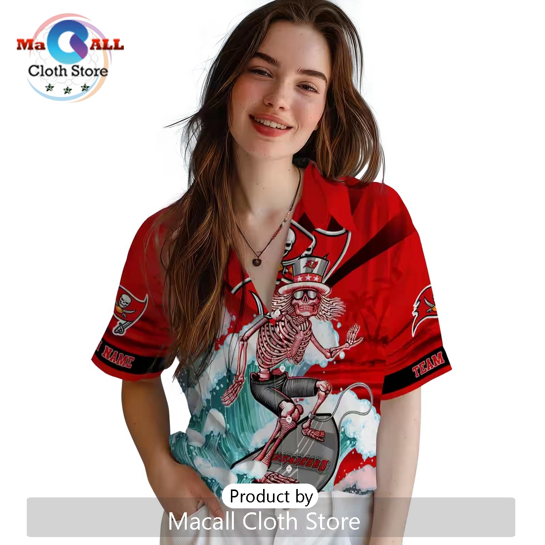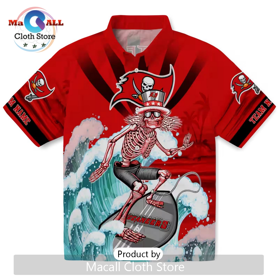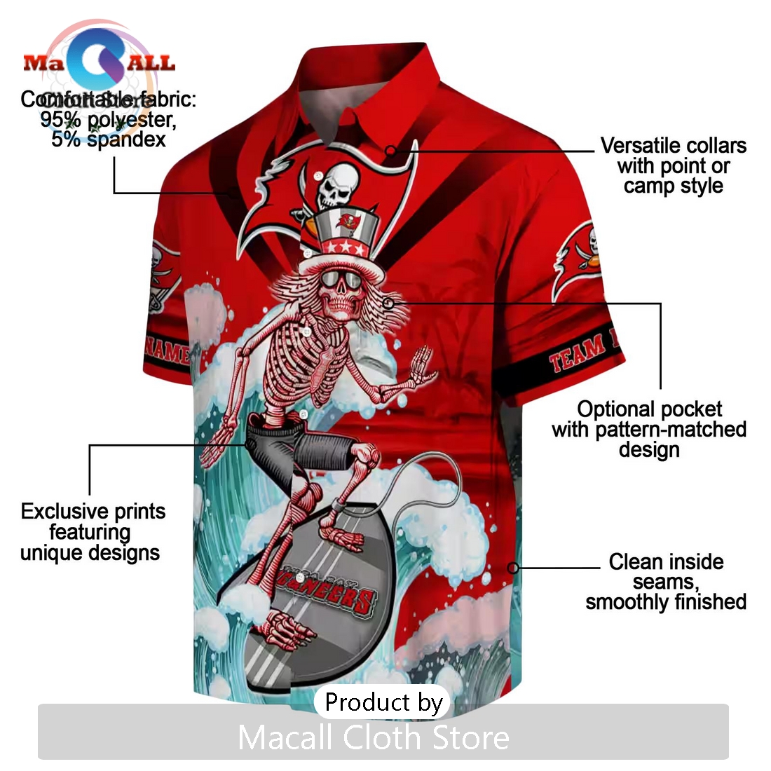 Custom Tampa Bay Buccaneers Surfing Skeleton Hawaiian Shirt Information: