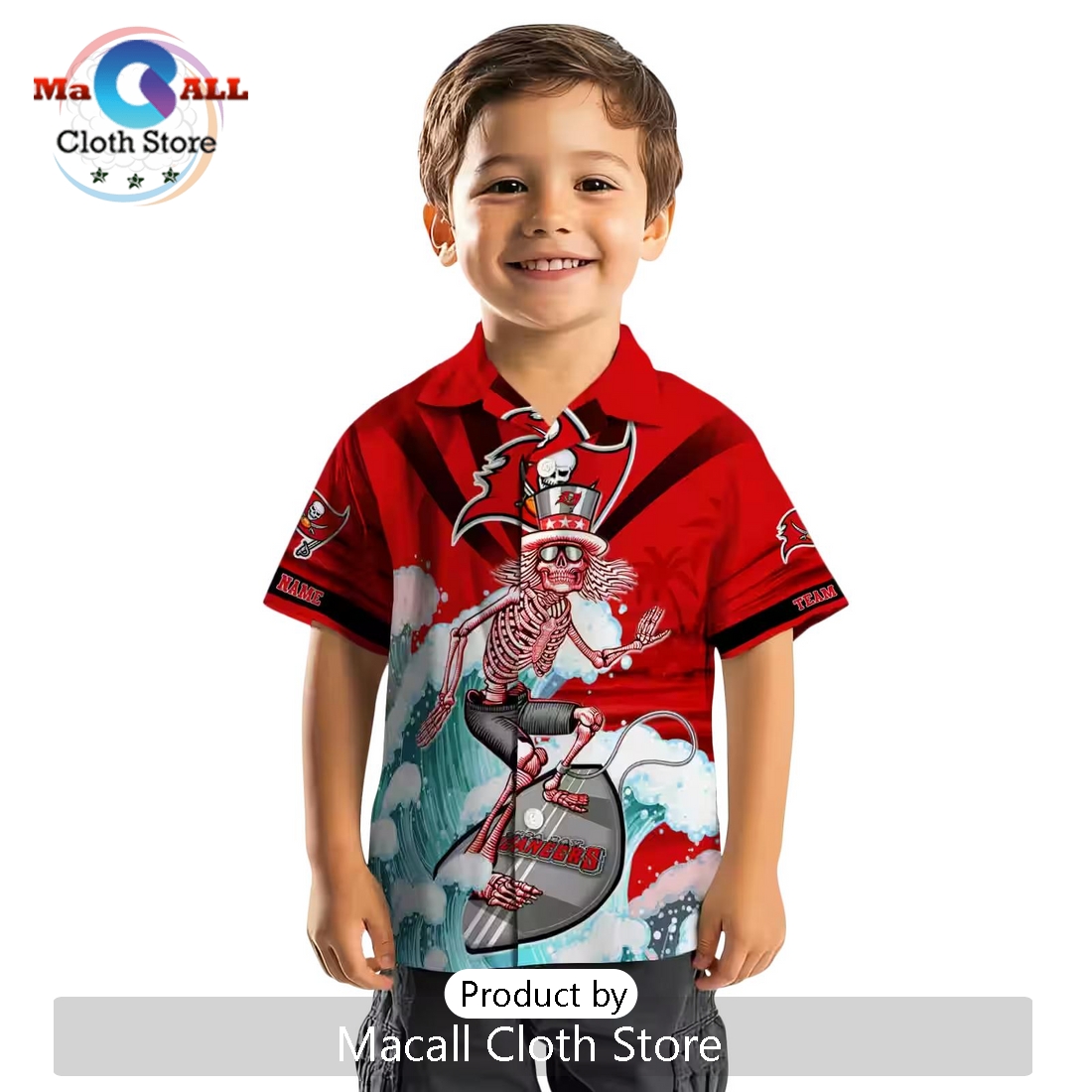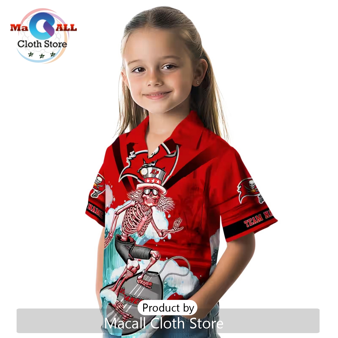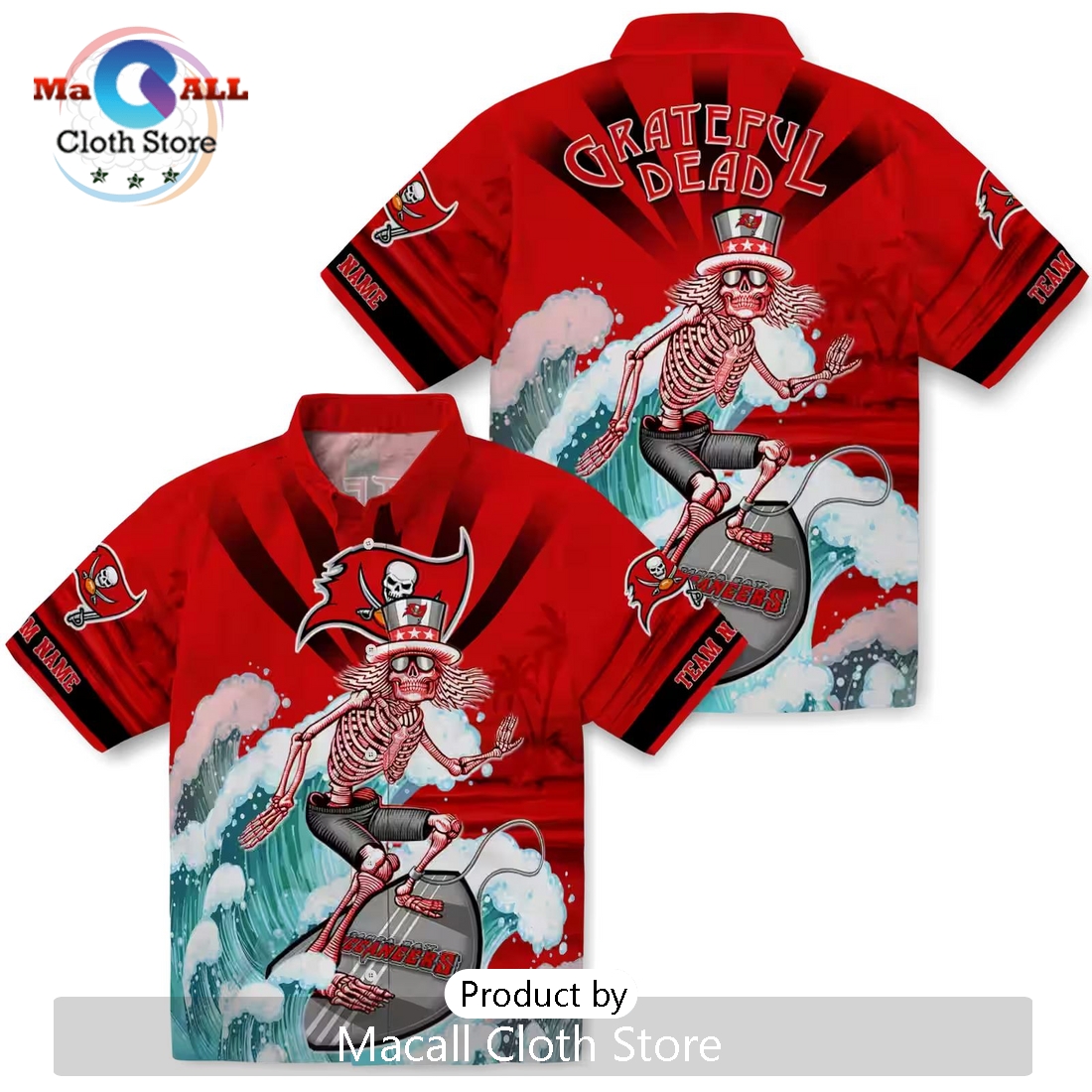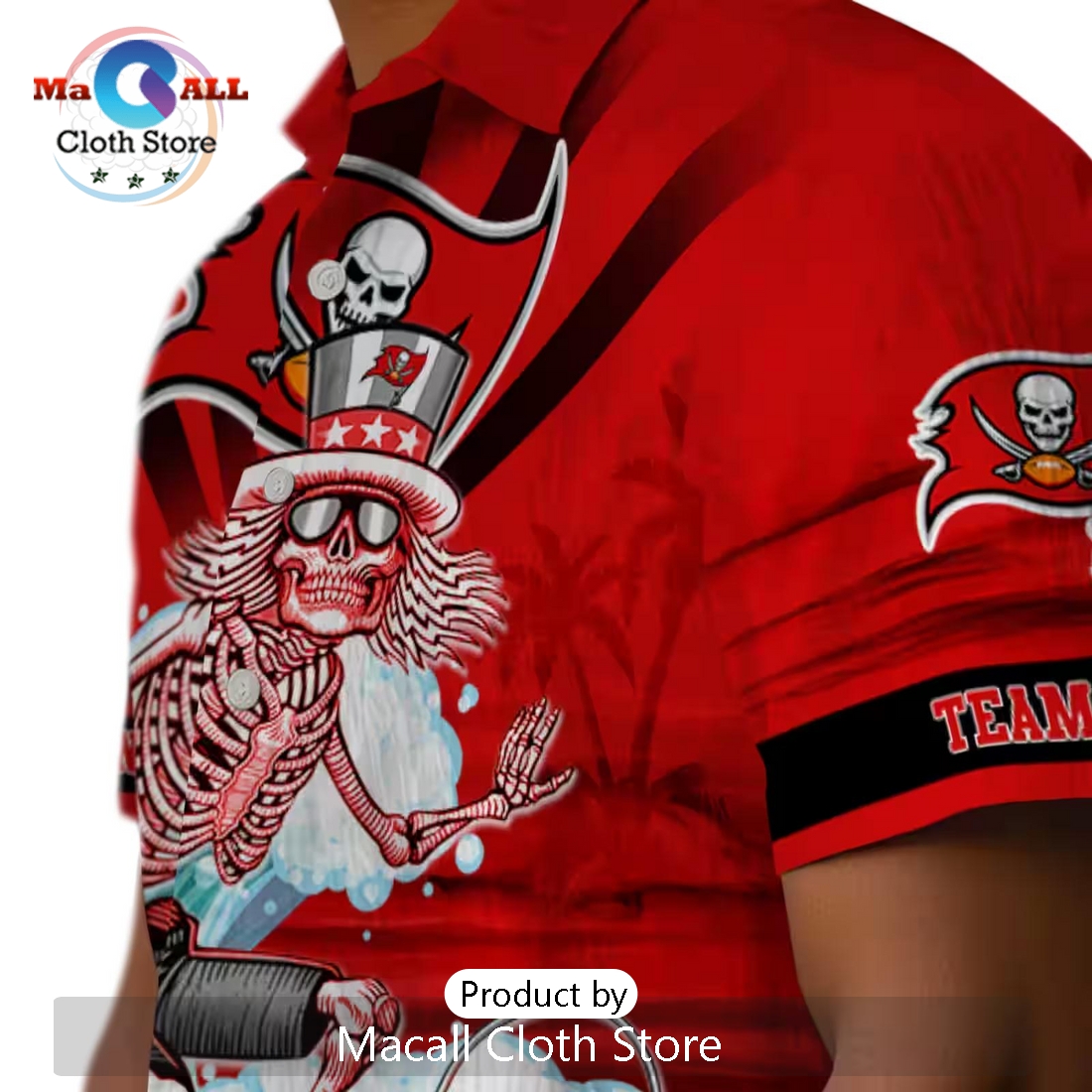 Custom Tampa Bay Buccaneers Surfing Skeleton Hawaiian Shirt Information: