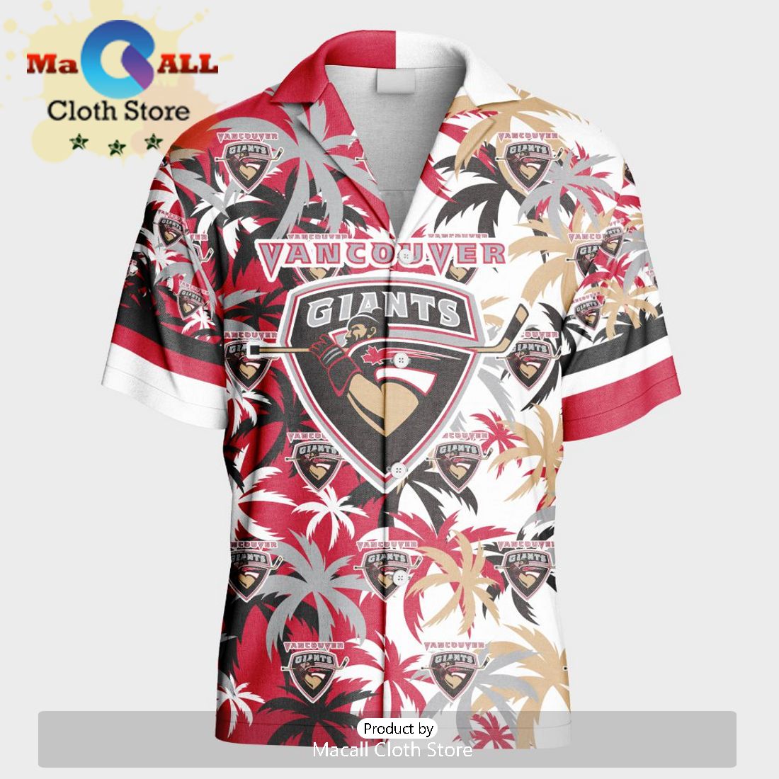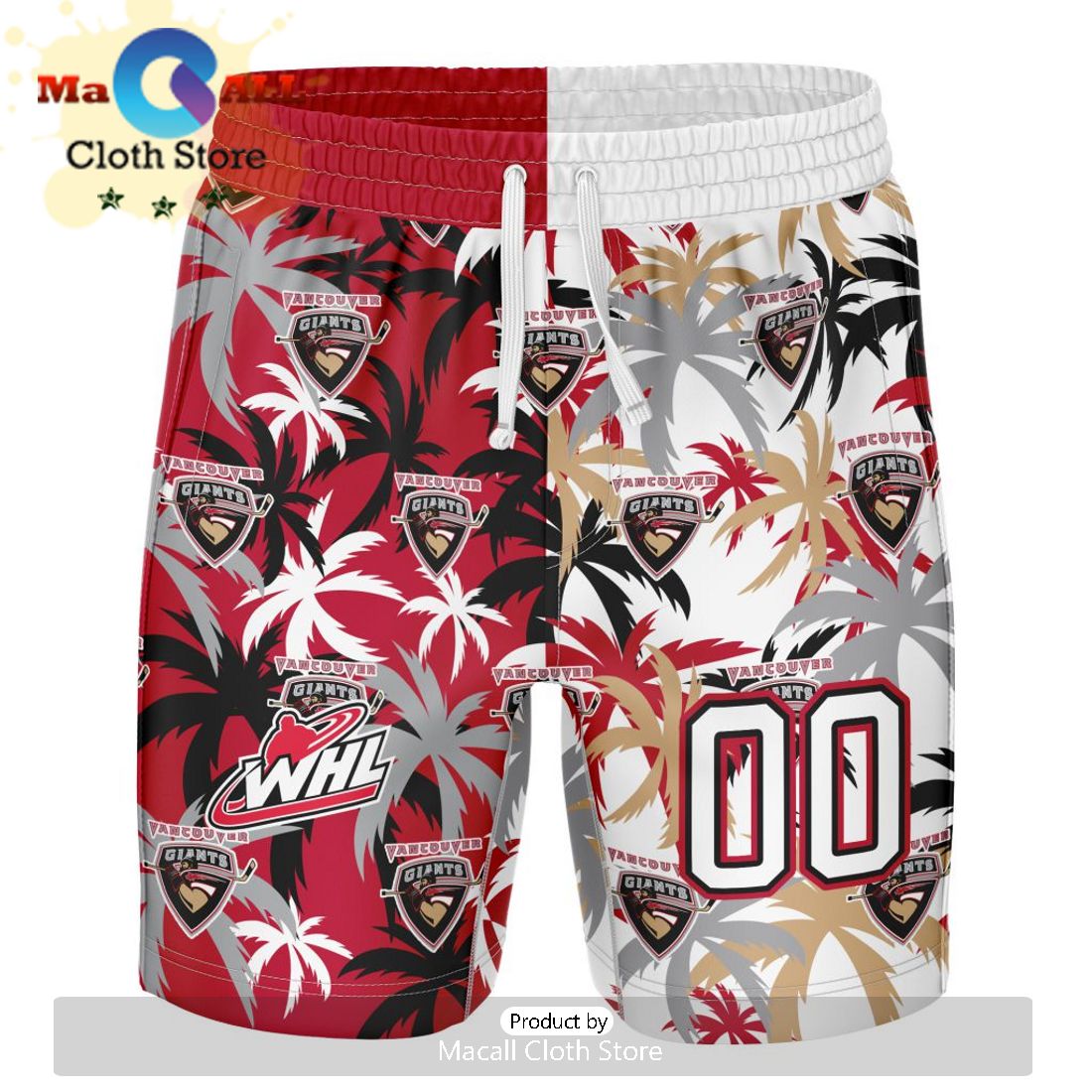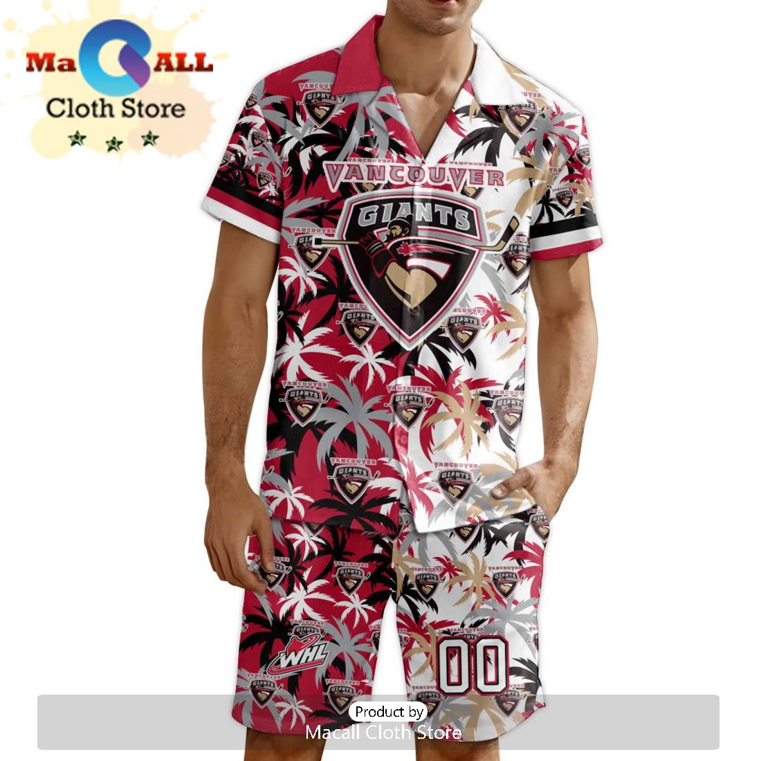 The Vancouver Giants Hawaiian shirt features a mix of the team’s home and away jerseys, creating a one-of-a-kind look. The short pants are also made with a mix of the team’s colors, giving you a complete outfit that will show your team pride.