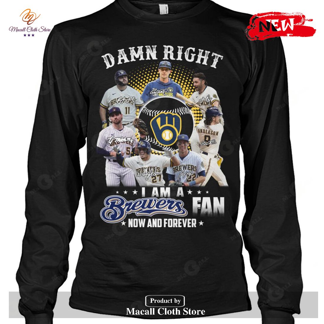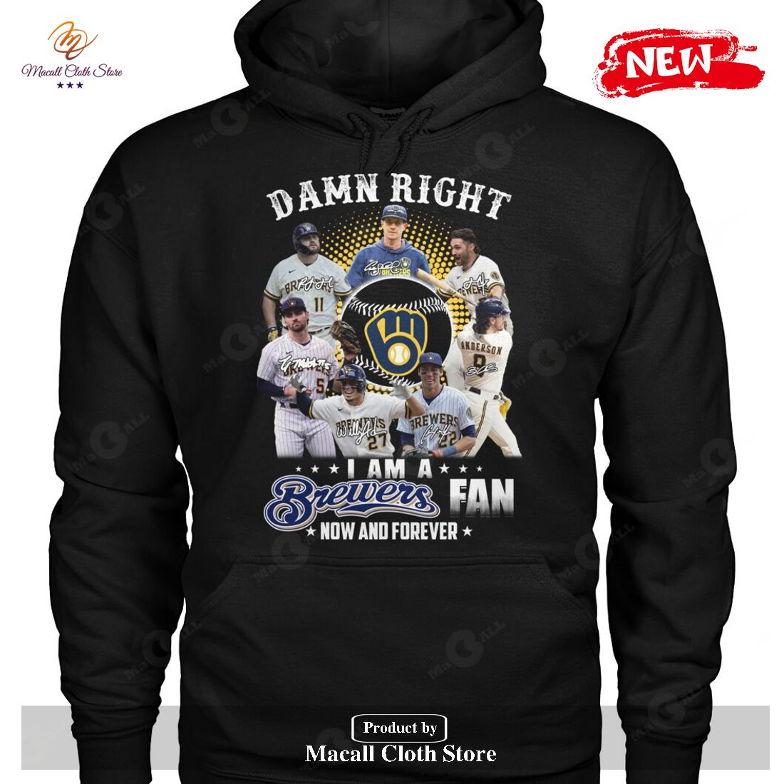 Damn Right I am a Brewers Fan Now and Forever Signatures T-Shirt Unisex Hoodie, Ladies, Youth, Long Sleeve, Sweatshirt, Mug, Mask