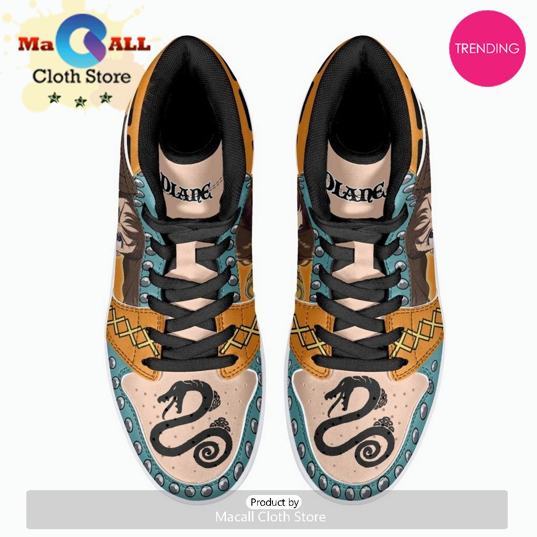 Diane Seven Deadly Sins JD1 High Top Shoes are the perfect way to show your love for the anime series. These shoes are made with high-quality materials and construction, and they feature an eye-catching design that will turn heads wherever you go.