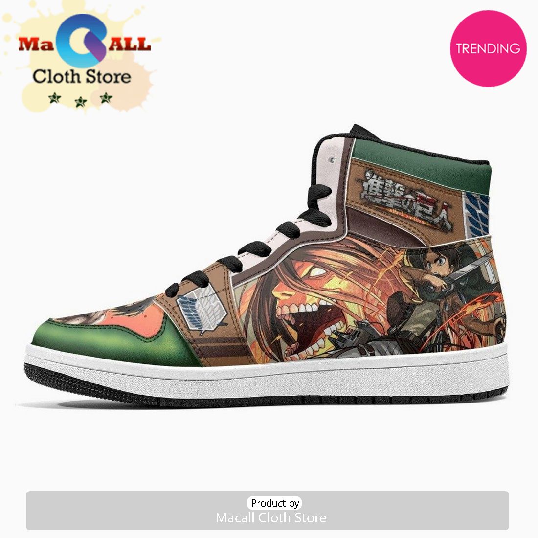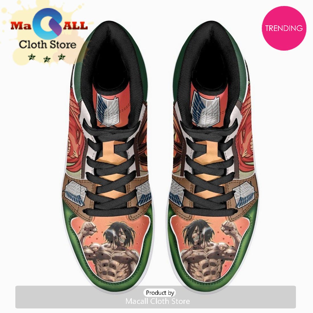 Eren Yeager Titan Transformation Shingeki No Kyojin JD1 High Top Shoes Information: