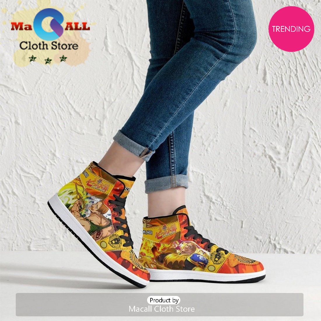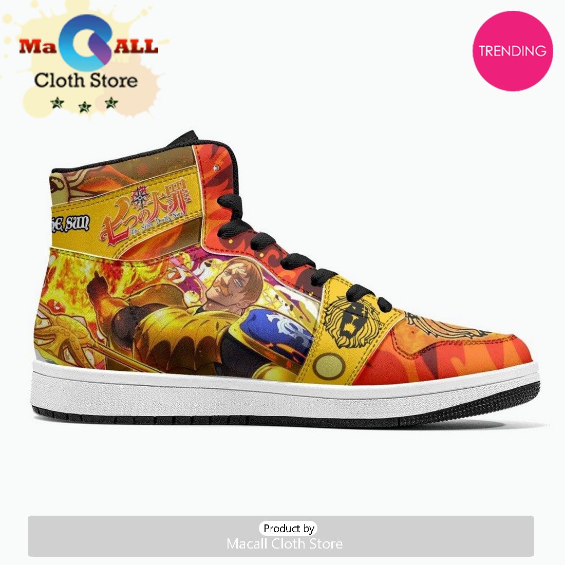 When wearing these shoes, there is an overwhelming sense of confidence and power that courses through me. The sleek design and vibrant colors make me stand out in a crowd, while the high-top style offers a sense of support and protection. The material used is top-quality and durable, making every step feel effortless and comfortable. The unique artwork and nods to a popular anime series add a touch of individuality and creativity to my outfit. These shoes not only serve as a fashion statement but also reflect my love for the show and its characters. Every time I look down at my feet, I am reminded that I can conquer any obstacle just like the mighty Escanor from the Seven Deadly Sins. These shoes seamlessly blend style and function, making them the perfect choice for any occasion. Whether I am out for a walk or hitting the gym, I feel like I can take on the world with these shoes on my feet. They truly embody the essence of Escanor’s catchphrase, “Praise the Sun!” With each step, I feel like I am channeling his immense power and radiating his unwavering confidence. These shoes are not just a footwear choice, but a statement of my personality and my admiration for the character. They have become an integral part of my wardrobe, and I cannot imagine a day without them. Overall, wearing these shoes makes me feel unstoppable, and I am grateful to have stumbled upon this amazing product, which has become a staple in my wardrobe.