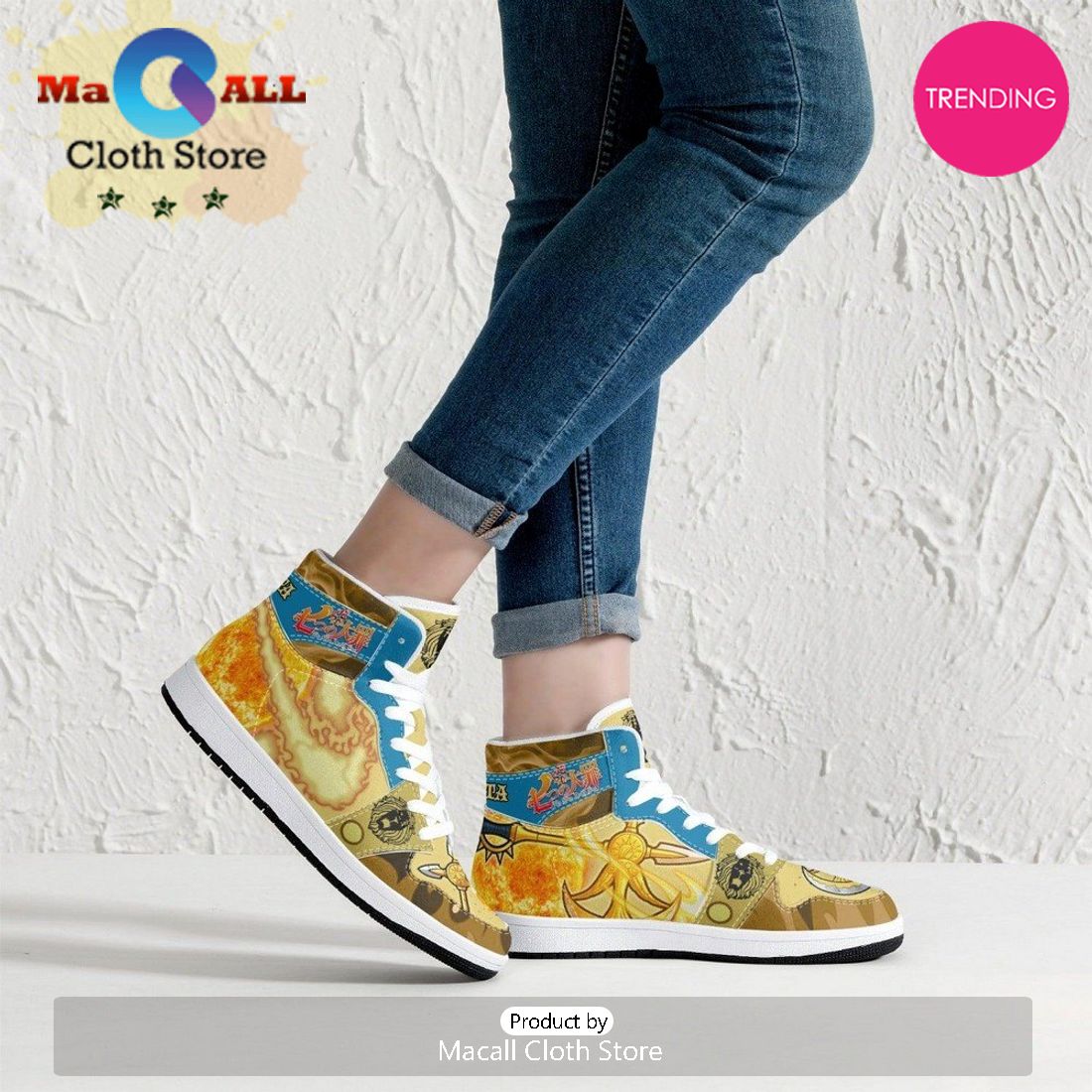 The Escanor Rhitta Seven Deadly Sins JD1 High Top Shoes are a must-have for fans of the popular anime series, The Seven Deadly Sins. These shoes are not only stylish and eye-catching, but they are also designed for comfort and durability. Made with high-quality materials, these shoes feature a vibrant color scheme and intricate designs that are inspired by the powerful character, Escanor. The shoes also include the iconic symbol of the Lion’s Sin of Pride on the tongue, adding a touch of authenticity to the design. Whether you’re a die-hard fan of The Seven Deadly Sins or just looking for a unique and trendy pair of shoes, the Escanor Rhitta JD1 High Top Shoes are the perfect choice. They are guaranteed to make a statement and elevate any outfit, while also providing long-lasting support and comfort for all-day wear. Don’t miss out on the opportunity to own these exclusive shoes and show off your love for The Seven Deadly Sins.