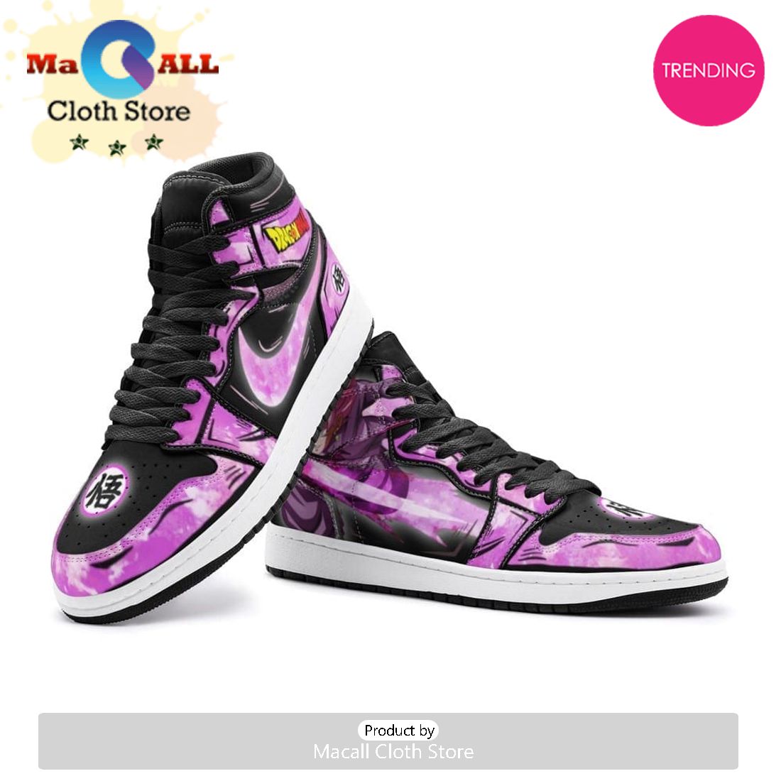 The Goku Black Rose Dragon Ball Air Jordan 1 High Top Shoes are a must-have for any fan of the famous Dragon Ball series. These shoes fuse the worlds of basketball and anime, featuring a sleek black design with pops of vibrant pink to represent Goku’s iconic Super Saiyan Rose form. The shoes also come with Dragon Ball-inspired details such as the “Z” logo on the tongue and the dragon symbol on the heel. Not only do these shoes pay homage to the beloved series, but they also provide superior comfort and performance on the court. Made with high-quality materials and equipped with Nike’s signature Air technology, these shoes ensure maximum support and cushioning for the wearer. Whether you’re a die-hard Dragon Ball fan or just looking for a stylish and functional pair of sneakers, the Goku Black Rose Dragon Ball Air Jordan 1 High Top Shoes are the perfect addition to your collection.