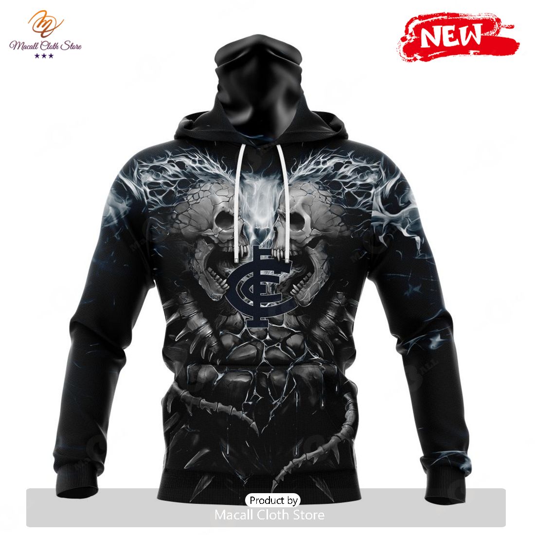 HOT AFL Carlton Football Club Special Skull Art Design Hoodie Sweatshirt 3D Information: