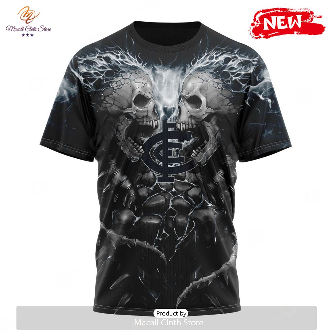 HOT AFL Carlton Football Club Special Skull Art Design Hoodie Sweatshirt 3D Trendy Fashion Style