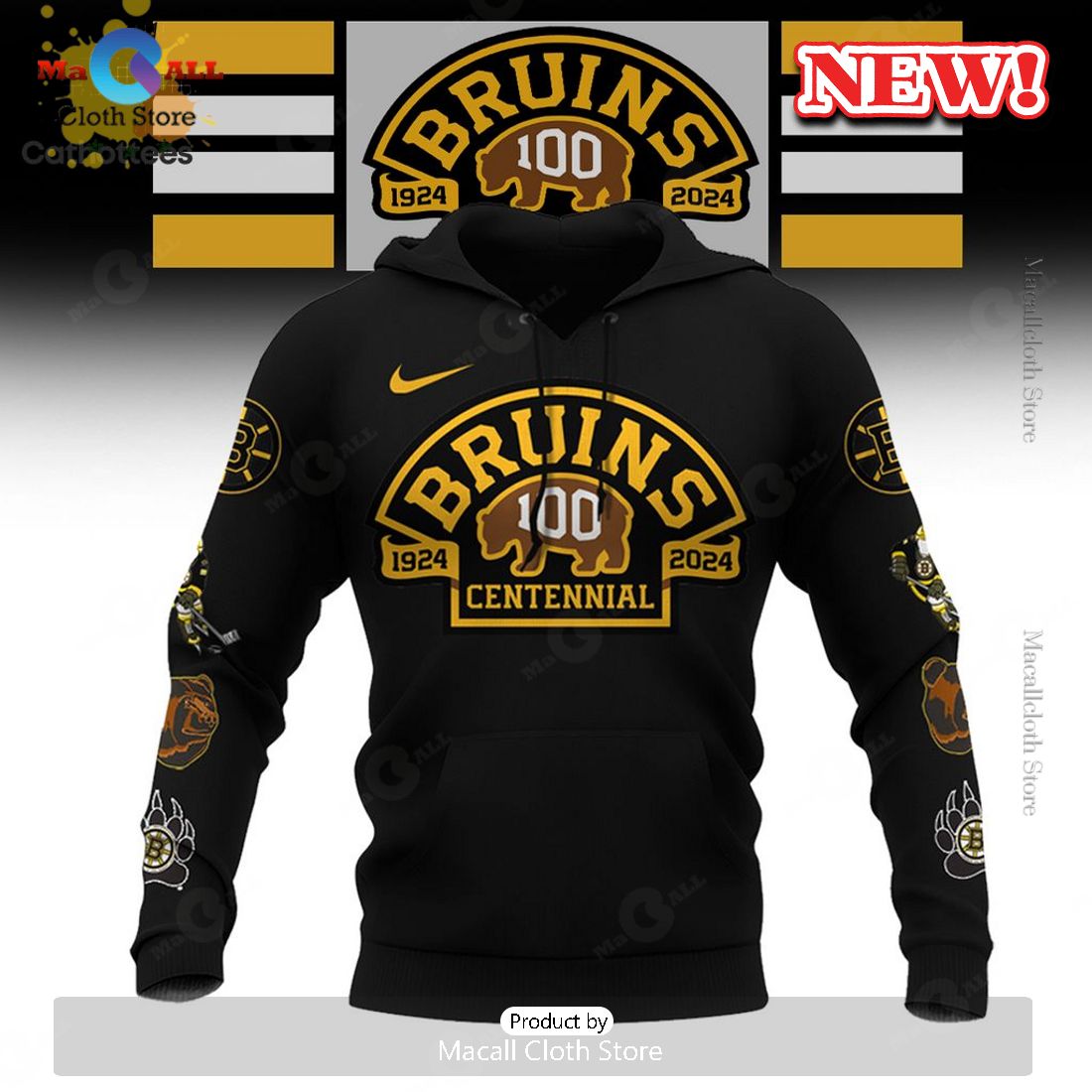 HOT Boston Bruins 100 Centennial Mascot NHL 1924 2024 Black Hoodie 3D Information:
