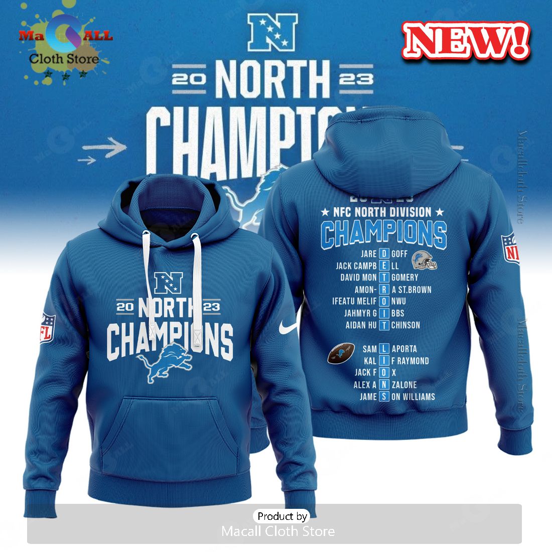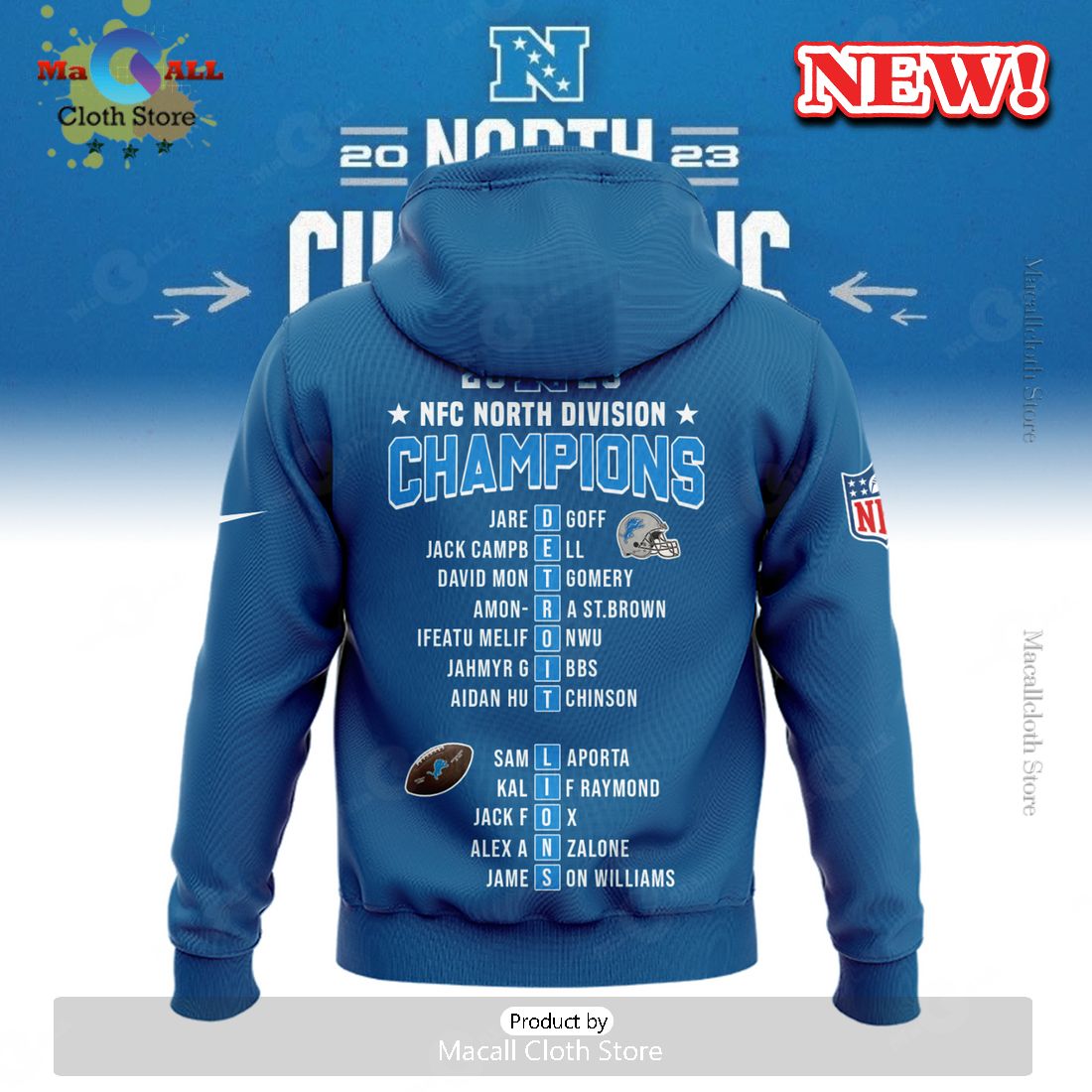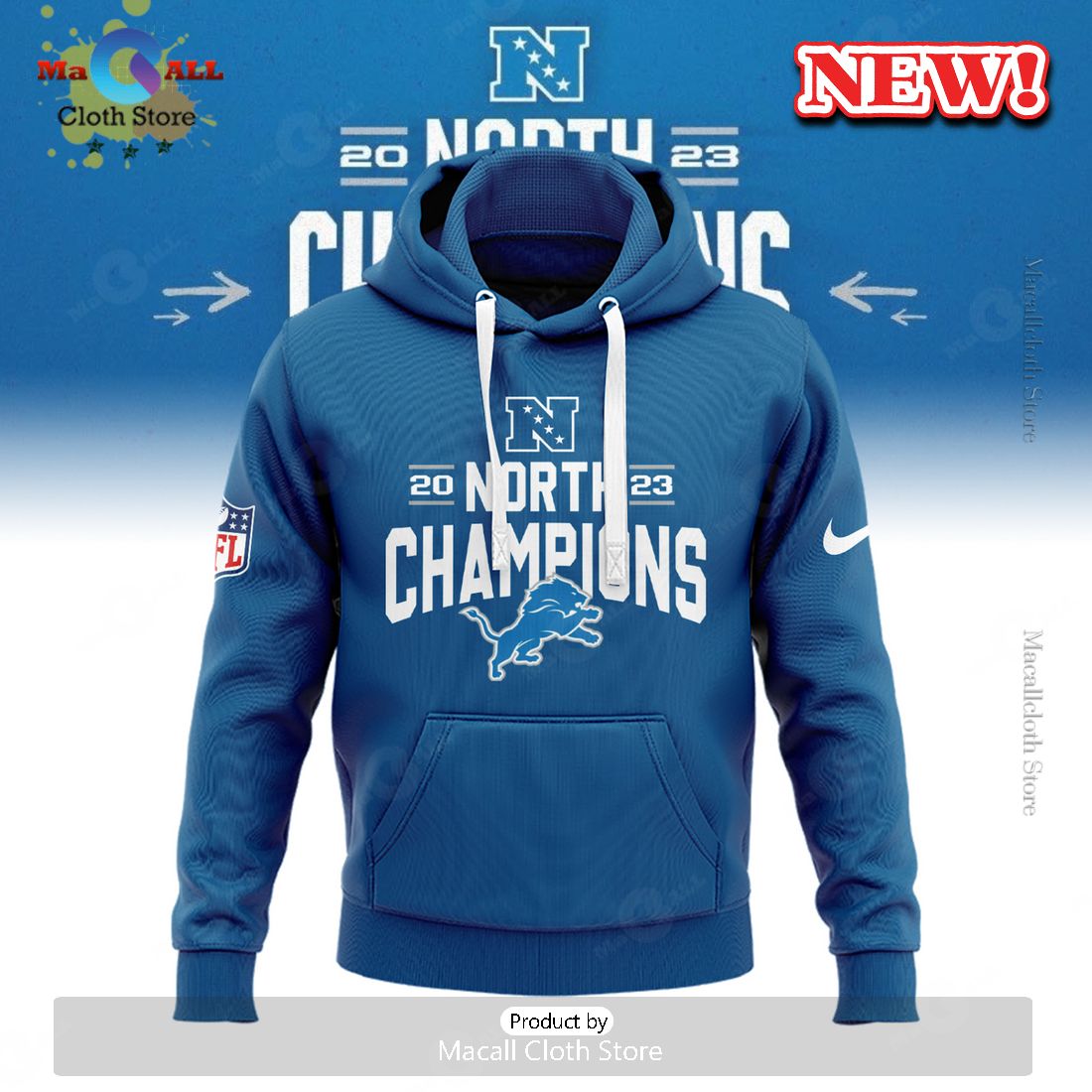 HOT Detroit NFC North Division Champions Nike 2023 Blue Hoodie 3D Information: