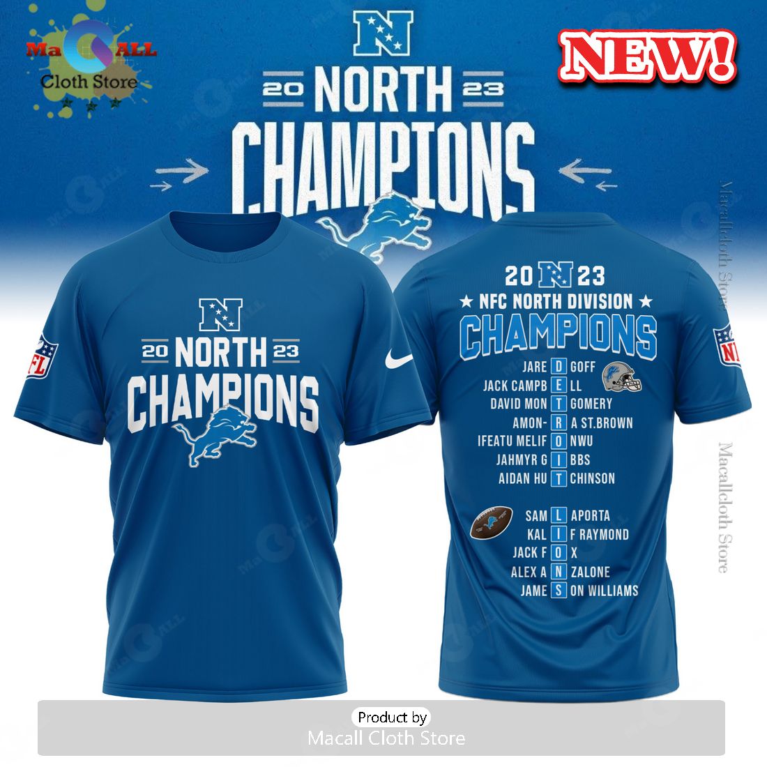 HOT Detroit NFC North Division Champions Nike 2023 Blue Hoodie 3D Trendy Fashion Hoodie 3D, T-Shirt 3D, Long Sleeves, Sweatshirt, Pant 3D Style