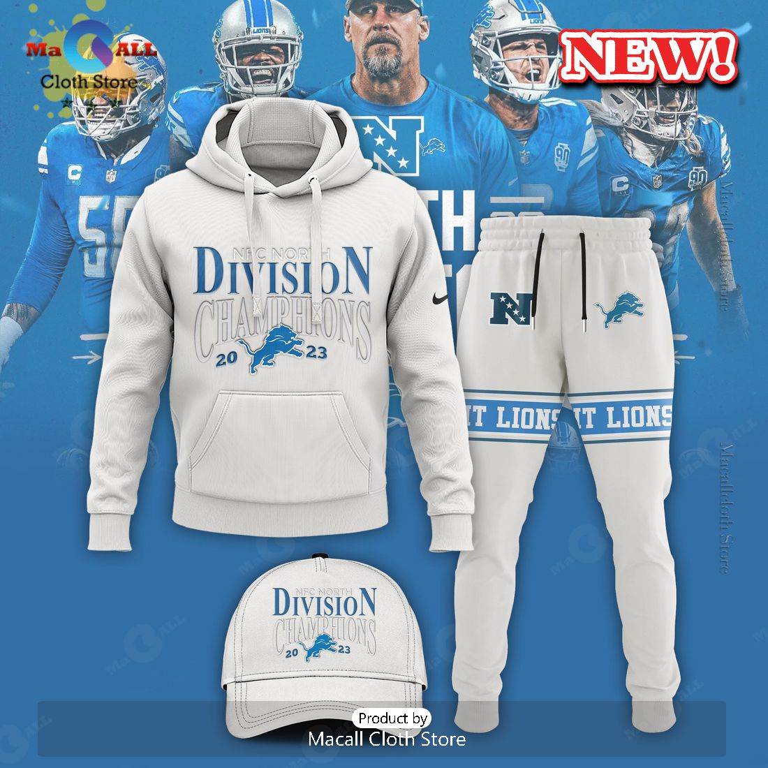 HOT Detroit NFC North Division Champions Nike 2023 White Hoodie 3D Trendy Fashion Hoodie 3D, T-Shirt 3D, Long Sleeves, Sweatshirt, Pant 3D Style
