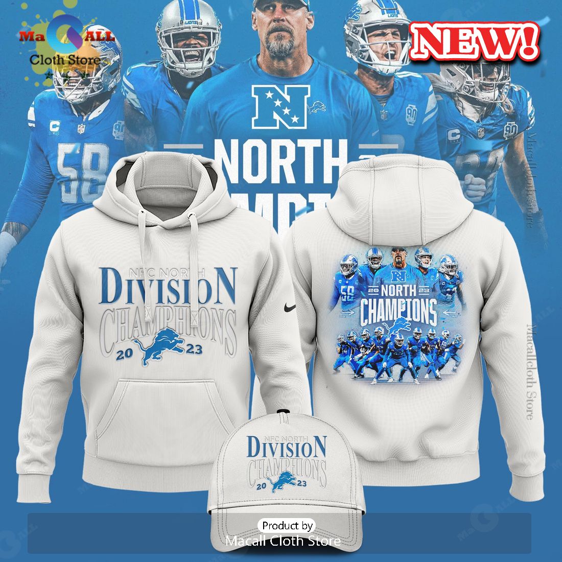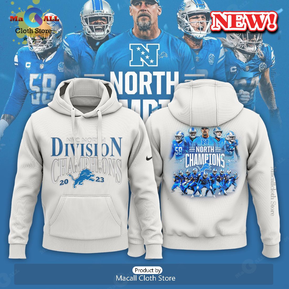 HOT Detroit NFC North Division Champions Nike 2023 White Hoodie 3D Information: