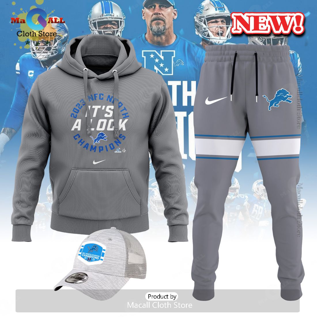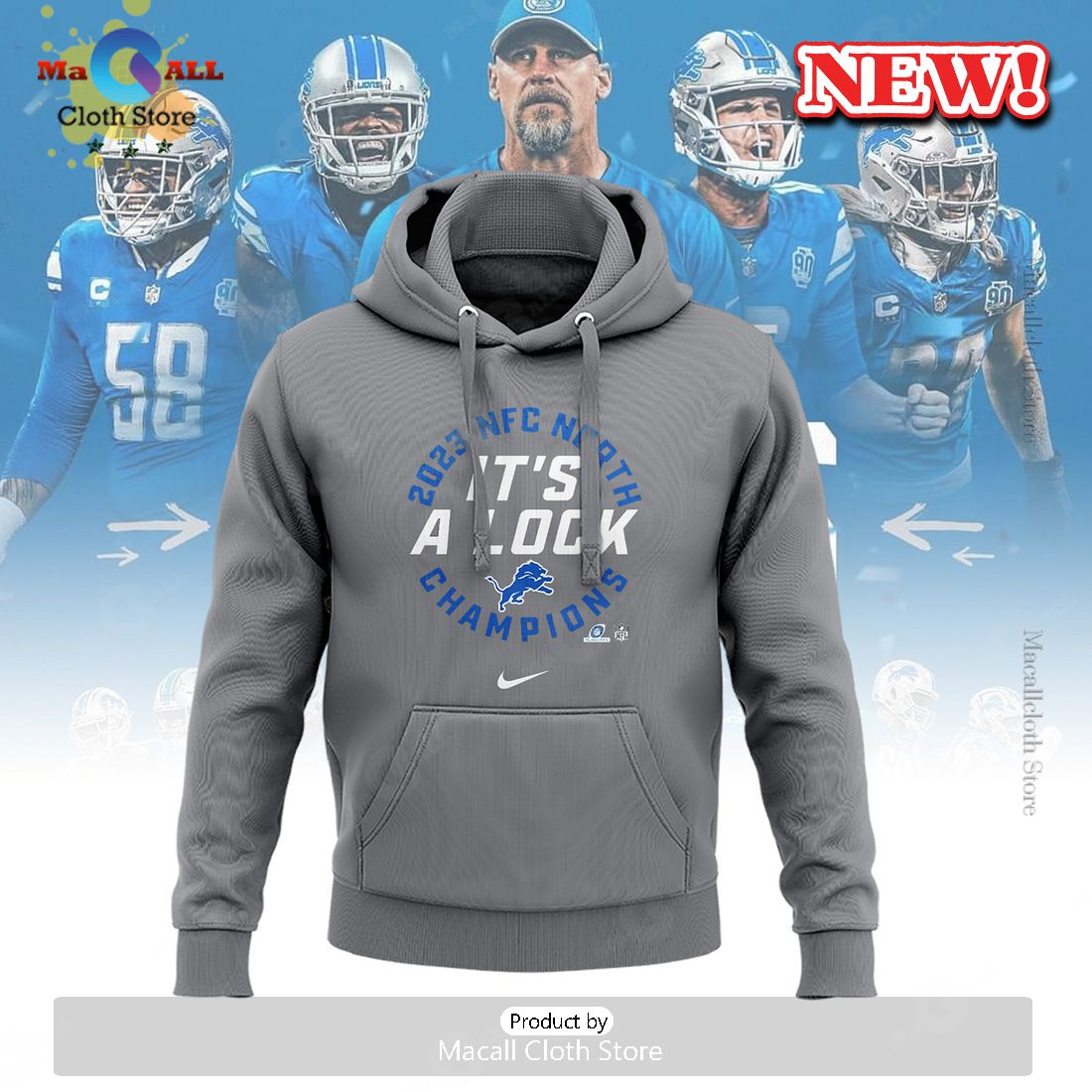 HOT Detroit Nike Grey 2023 NFC It’s A Lock Champions Hoodie 3D Information: