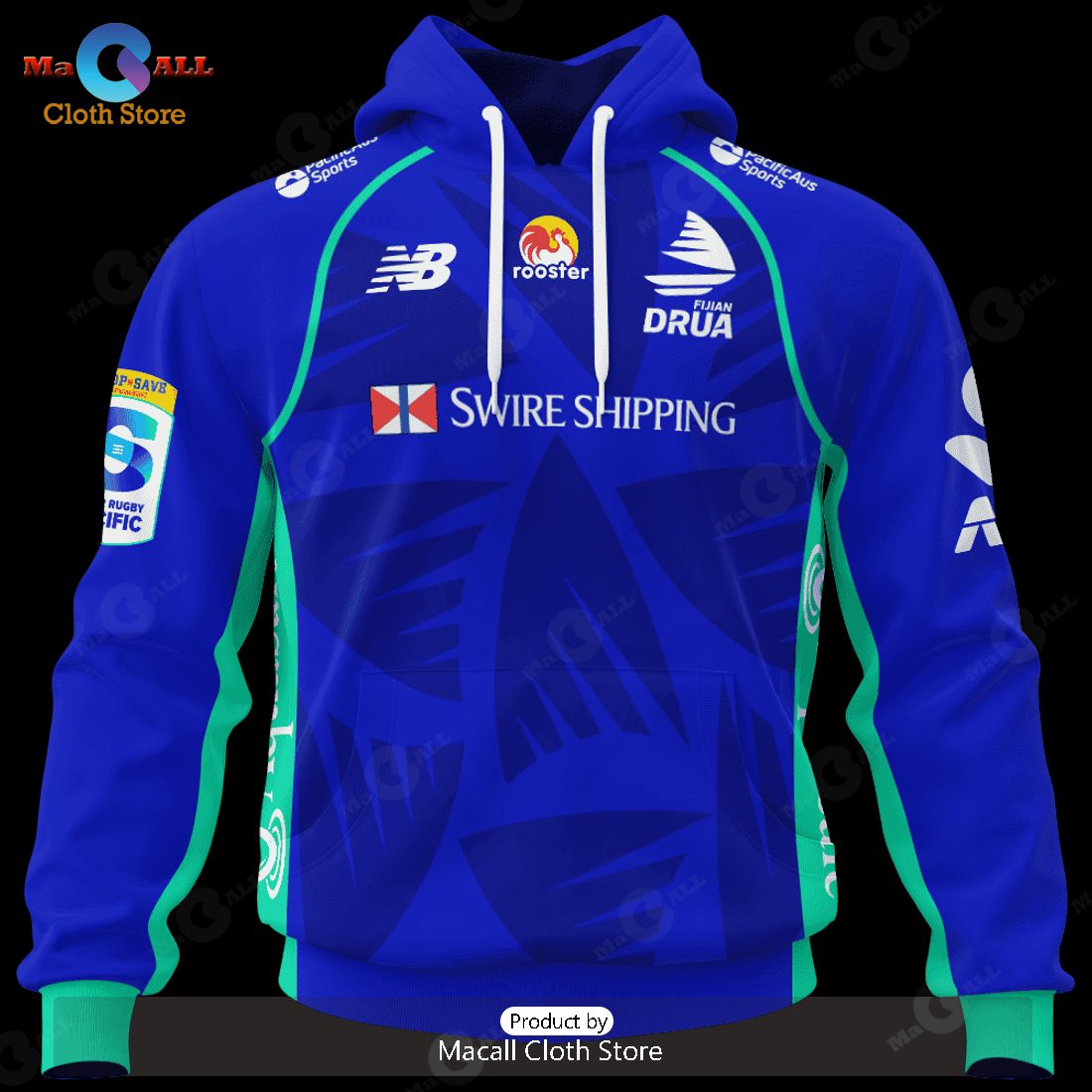 The HOT Fijian Drua Super Rugby 2023 Home Jerseys Personalized Hoodie Sweatshirt 3D is the ideal choice for those looking to show their support for the Fijian Drua! This high-quality 3D printed hoodie is personalized with your favorite player’s name and number. It also features the official Fijian Drua Super Rugby 2023 Home jerseys logo and a unique design inspired by the beautiful culture of Fijian rugby. Made from a comfortable cotton-poly blend, this hooded sweatshirt will keep you warm and stylish when cheering on your favorite team. Plus, it can be machine washed and dried, making it sustainable and easy to maintain. Get ready to show your support for the Fijian Drua!