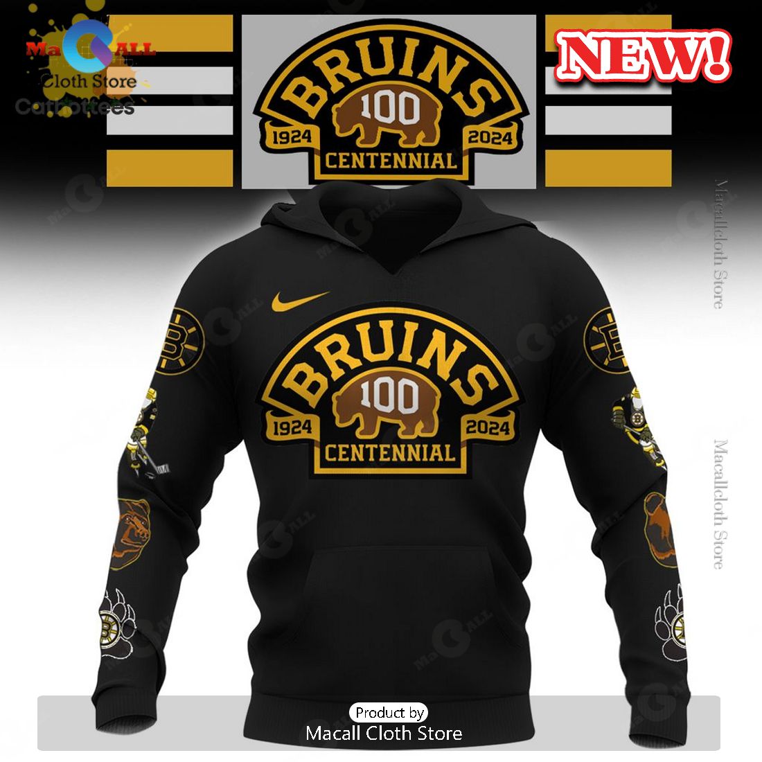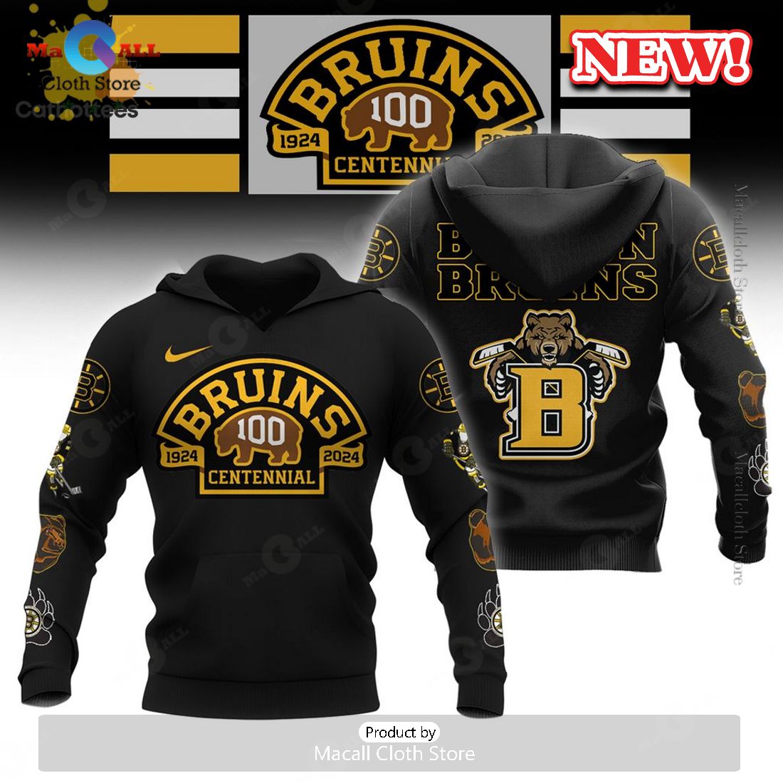 HOT NHL Boston Bruins 100 Centennial Mascot 1924 2024 Black Hoodie 3D