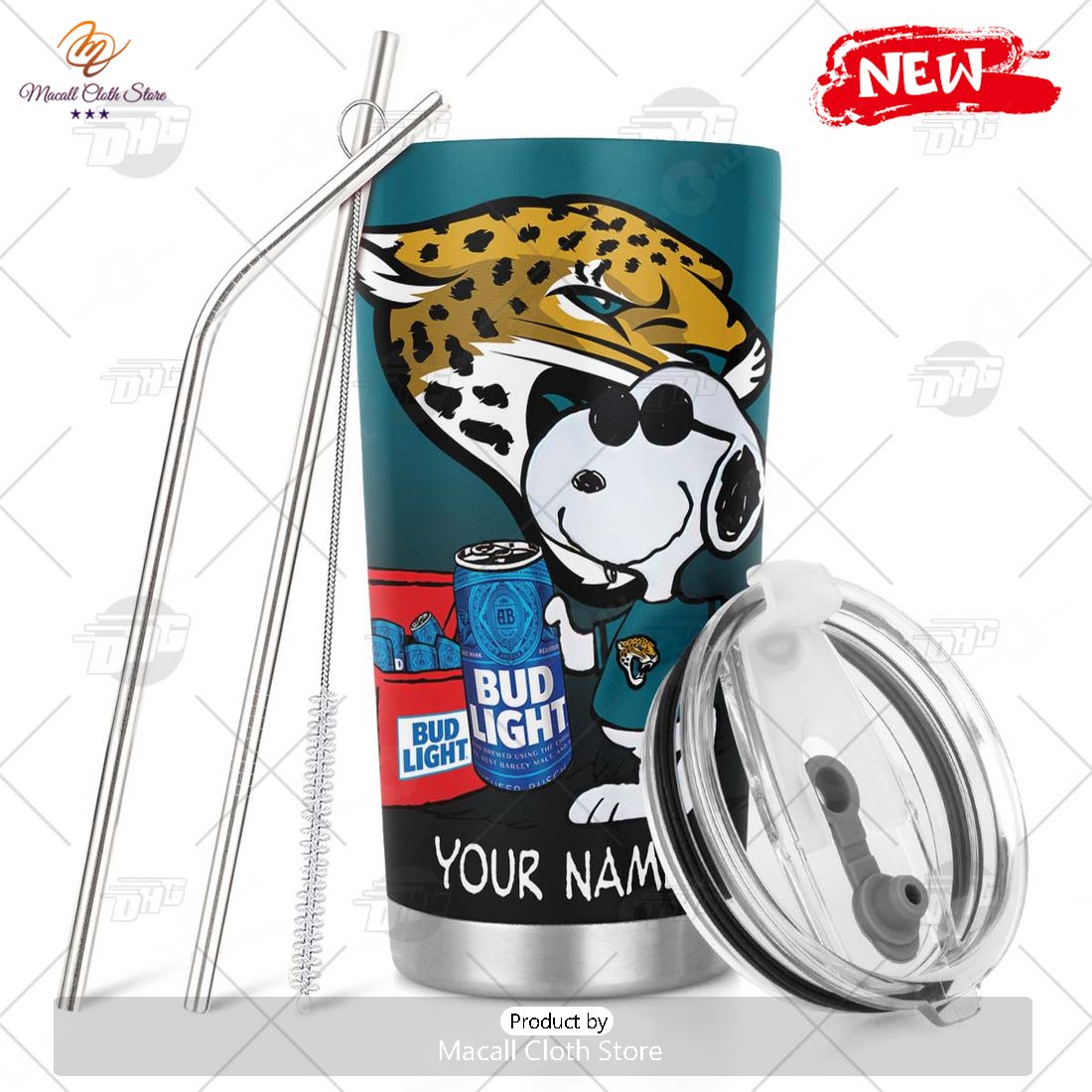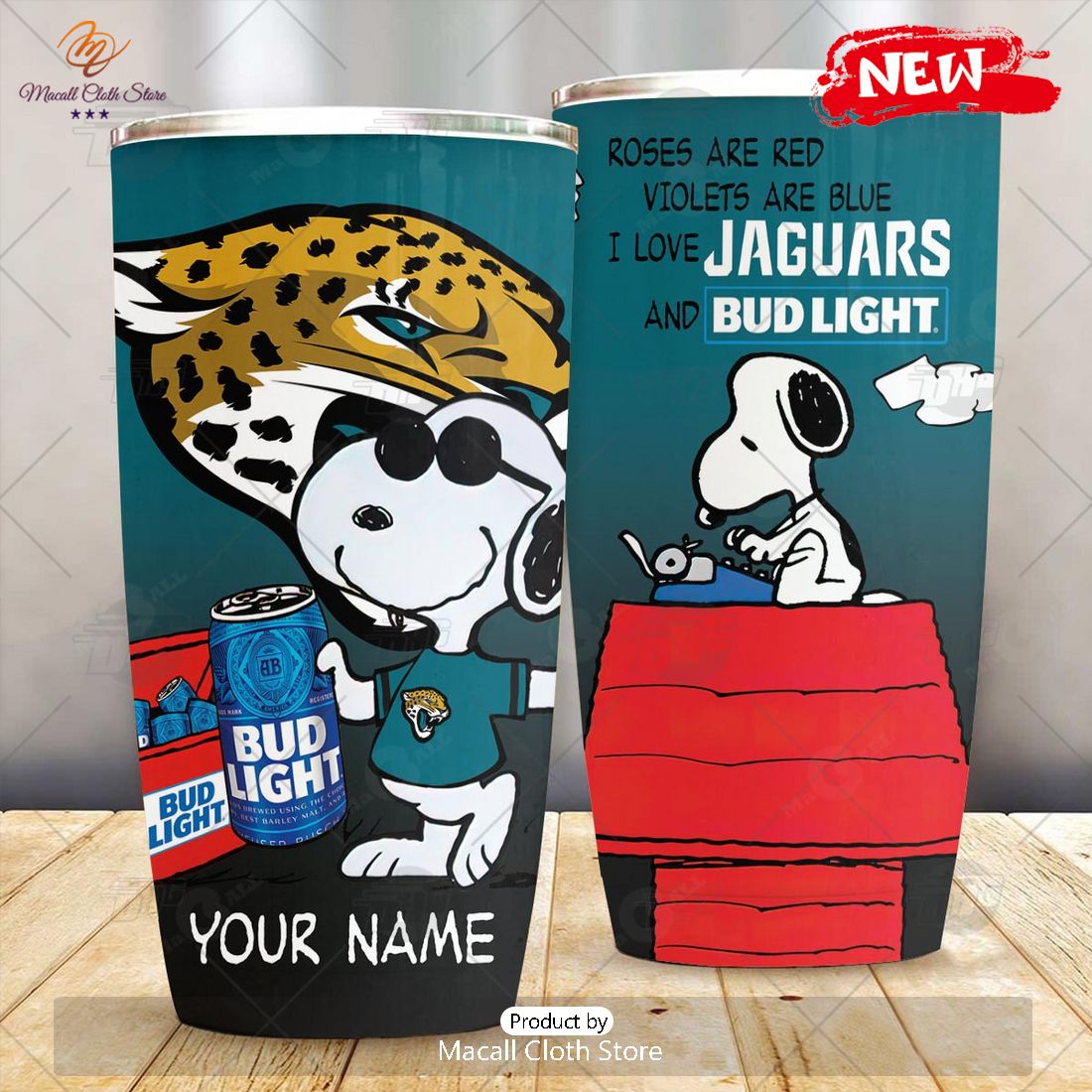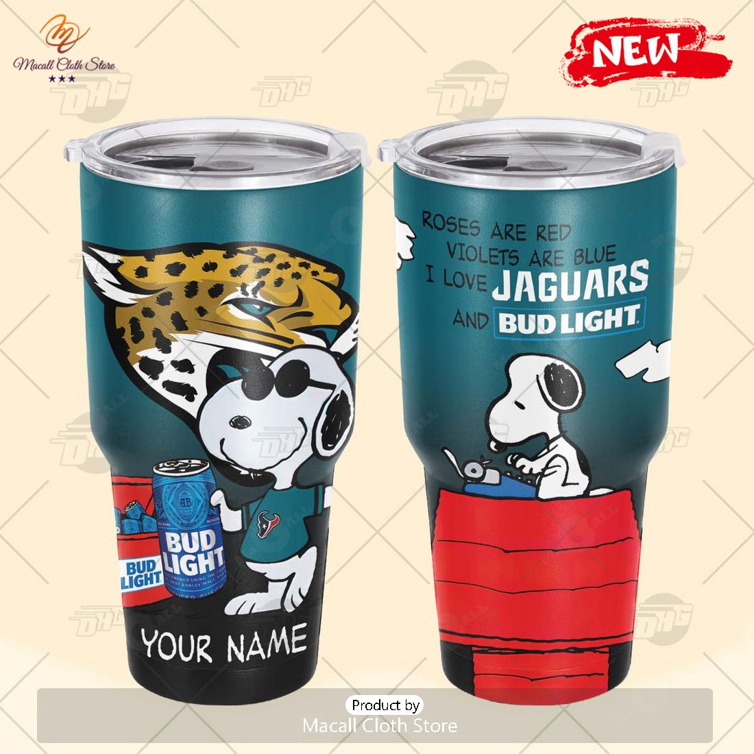 HOT Personalized NFL Jacksonville Jaguar Snoopy BUD LIGHT Beer Lover Stainless Steel Tumbler Information: