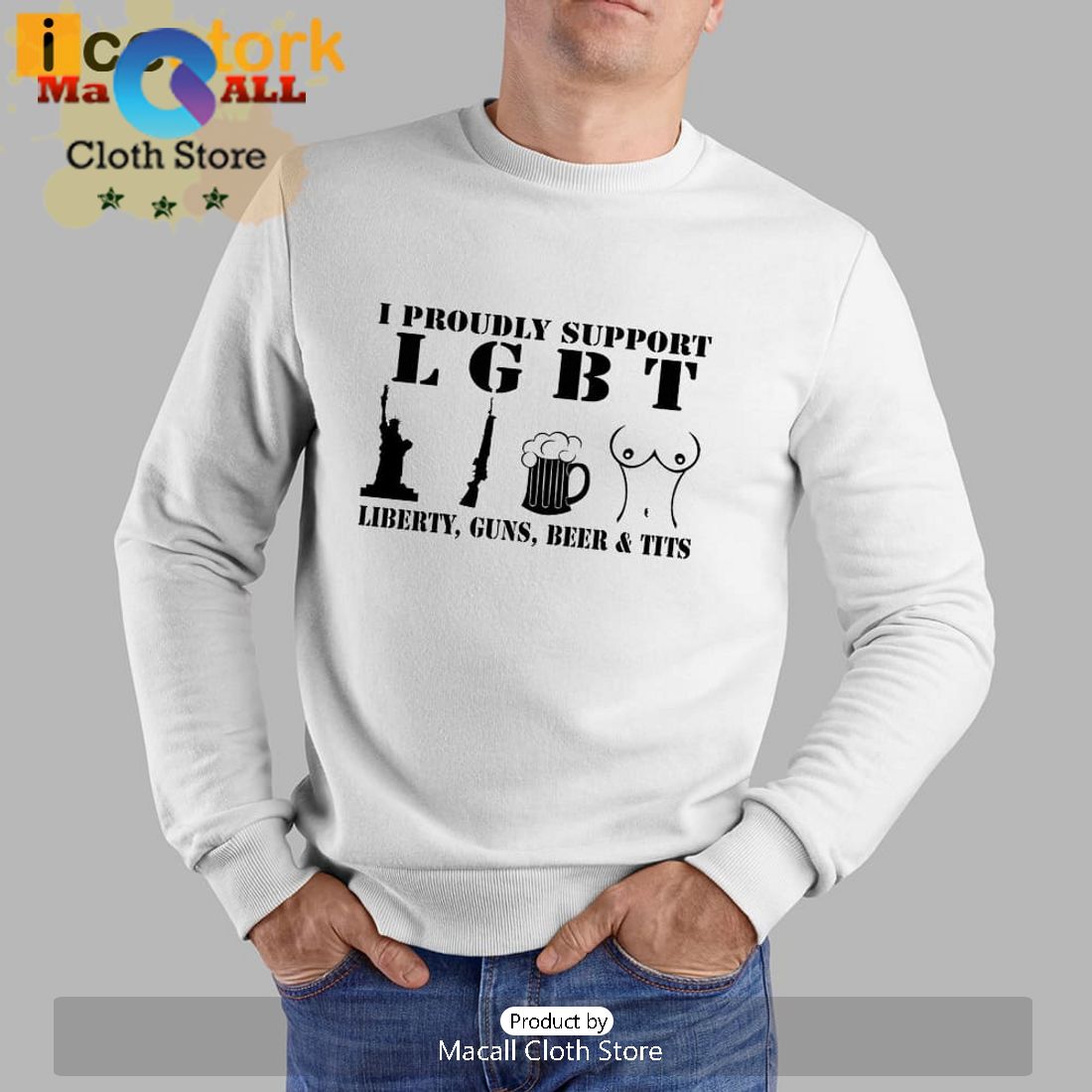 I Proudly Support LGBT Liberty Guns Beer Tits T-Shirt – Unisex Hoodie, T-Shirt, Ladies Shirt, Youth Shirt, Long Sleeve, Sweatshirt and Mug