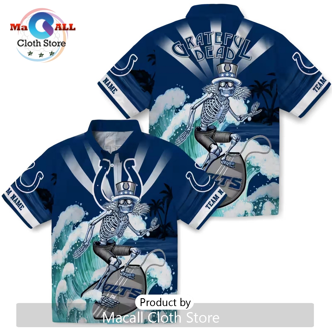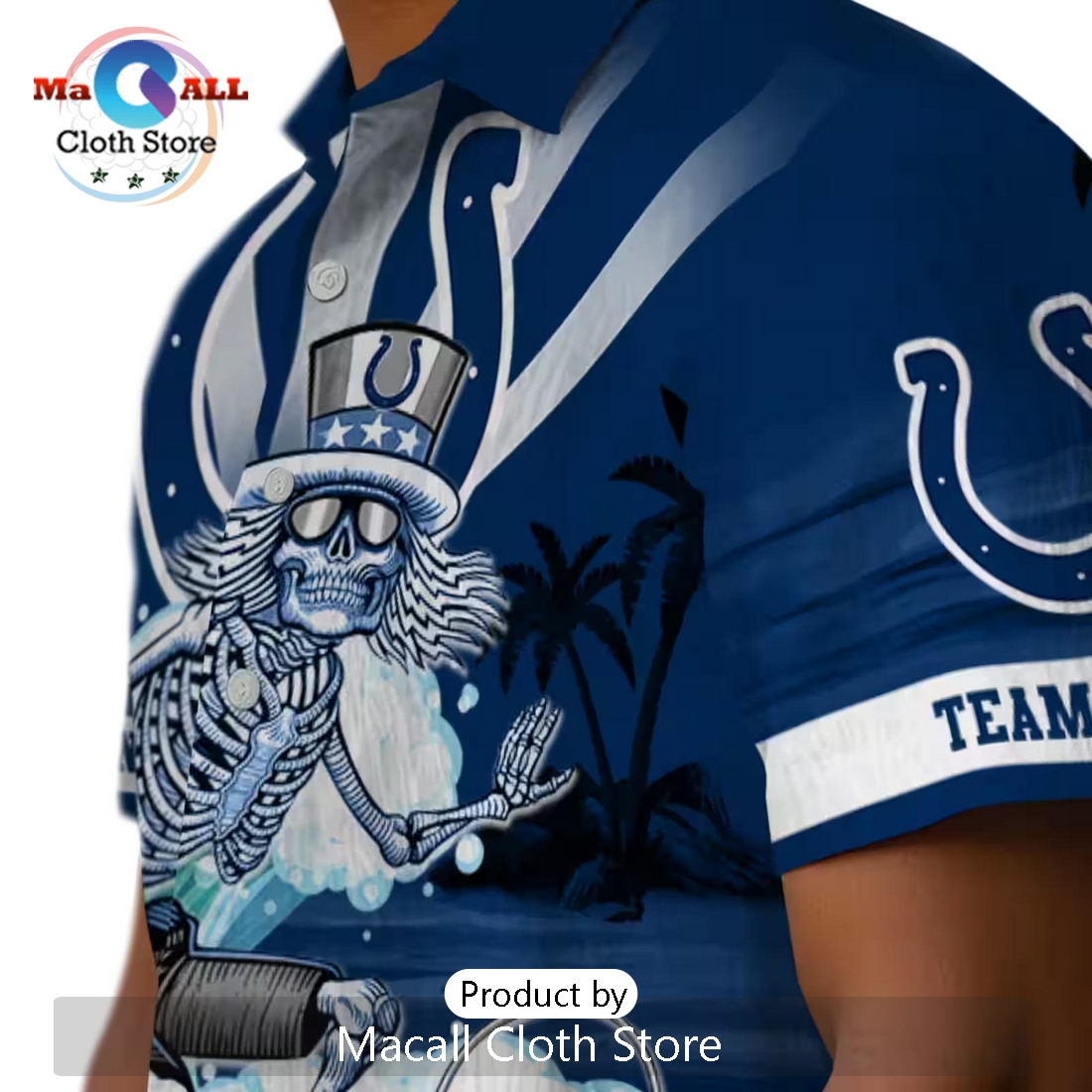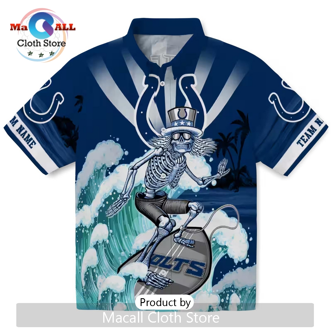 Indianapolis Colts Blue Surfing Skeleton Hawaiian Shirt Information: