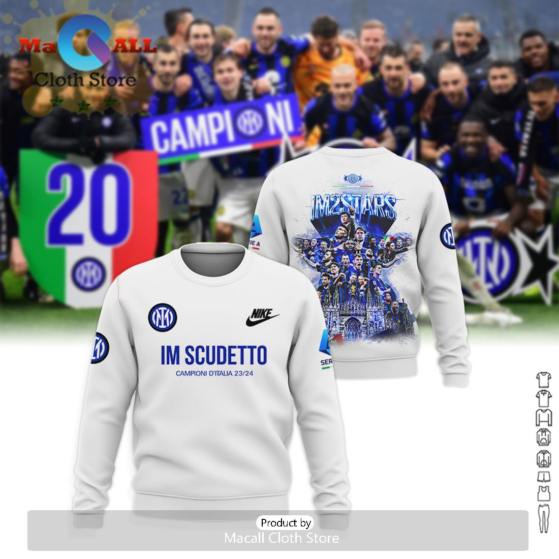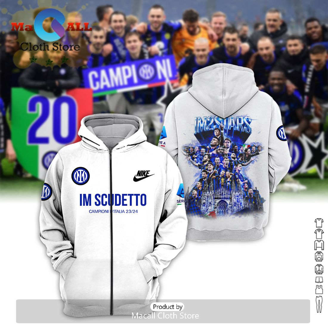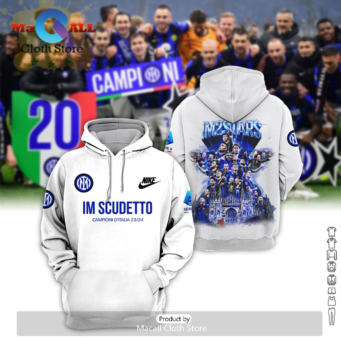 Inter Milan D’Italia 23-24 Campioni White Hoodie Trendy Fashion Hoodie, Zipper Hoodie, Fleece Zipper Hoodie, Dress Hoodie, T-Shirt, Long Sleeves, Sweatshirt and Long Pant