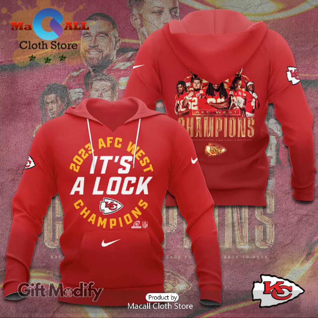 It’s A Lock NFL Kansas City Chiefs 2023 AFC West Champions Red Hoodie 3D Limited Trendy Fashion Hoodie, Zipper Hoodie, Fleece Zipper Hoodie, Dress Hoodie, T-Shirt, Long Sleeves, Sweatshirt and Long Pant