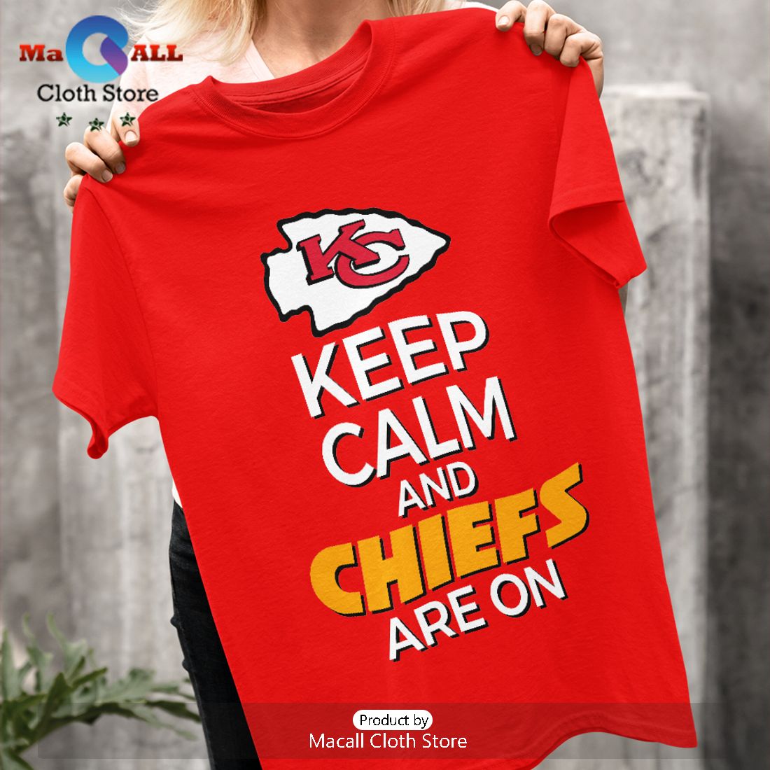 The Keep Calm And Chiefs Are On Crew Neck T-Shirt is a must-have for any fan of the Kansas City Chiefs. This comfortable, cotton t-shirt features the iconic Keep Calm and Carry On slogan, along with the Chiefs’ team logo. Whether you’re watching the game at home, at the stadium, or out and about, this shirt is sure to show your team spirit.